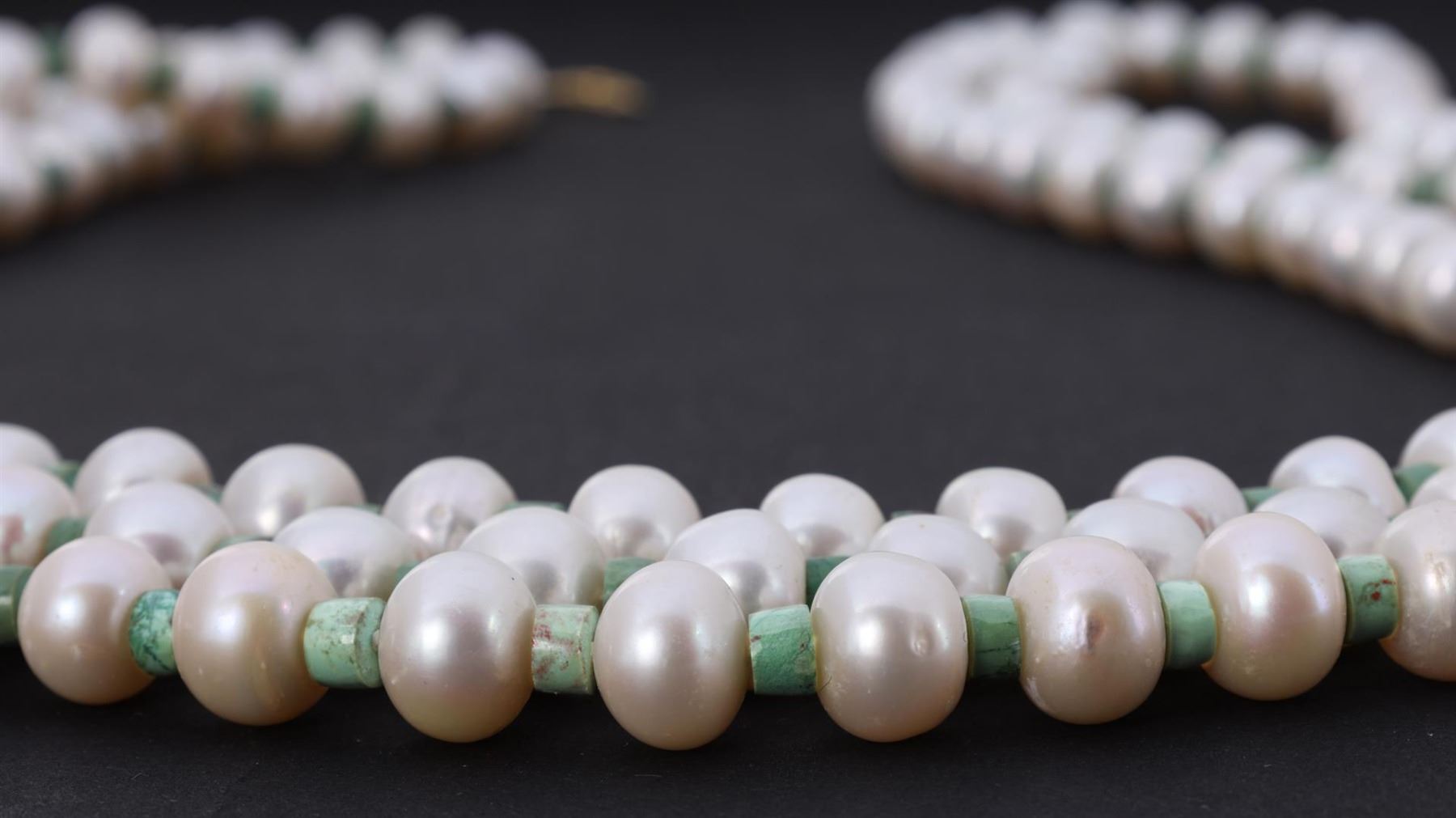 Three-Strand Pearl & Antique Peruvian Bead Necklace. Total weight is 193 gm. Estimated retail value $1,000.