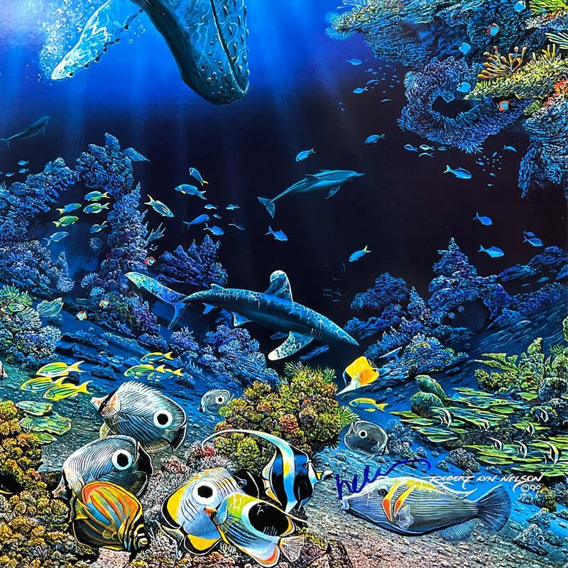 "Three Worlds" is a hand signed poster by Robert Lyn Nelson. Measures approx. 18" x 24" (image). There may be very minor wear on the paper but the piece is in overall good condition.