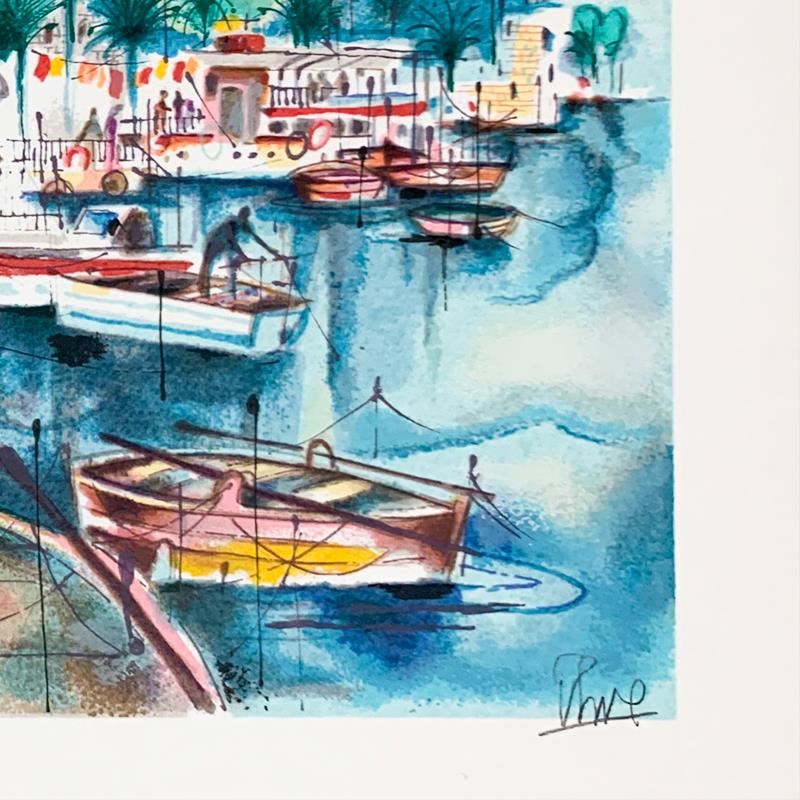 "Tiberias" is a limited edition serigraph on paper by Shmuel Katz (1926-2010), numbered and hand signed by the artist. Includes Letter of Authenticity. Measures approx. 12" x 9" (border), 8.5" x 11.5" (image).