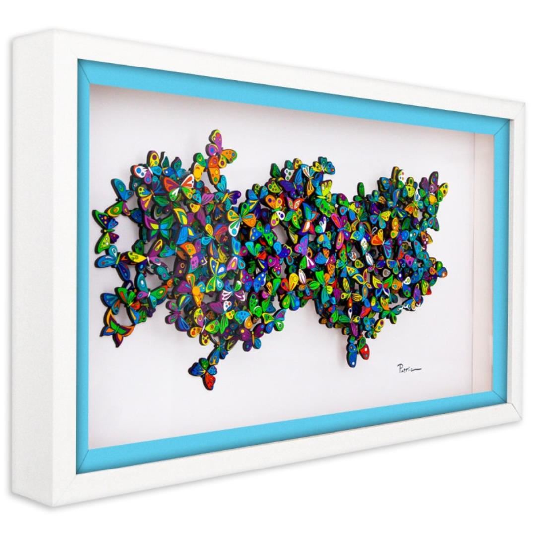 "Tide" is a limited edition 3D multilayered woodcut by Patricia Govezensky. Hand signed and numbered out Edition only 25 pieces, this pece comes framed and with a letter of authenticity. Measures approximately 15.5" x 24" (framed), 8" x 18" (piece).