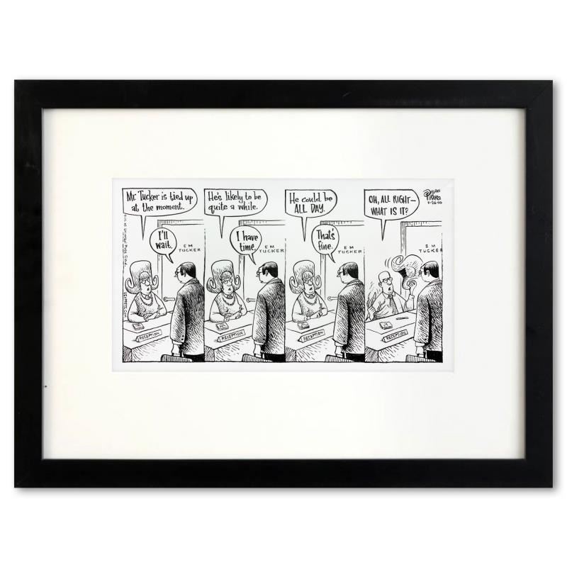 Enter a surreal and satirical world of twisted imagination and award winning creativity. "Tied Up" is an original pen & ink drawing on paper by Dan Piraro, creator of the critically acclaimed and award winning comic strip, Bizarro. This piece is hand signed, comes custom framed and includes a letter of authenticity. Measures approximately 14" x 21" (frame), 7" x 13" (image).This item requires special handling and may have a longer than usual turnaround.