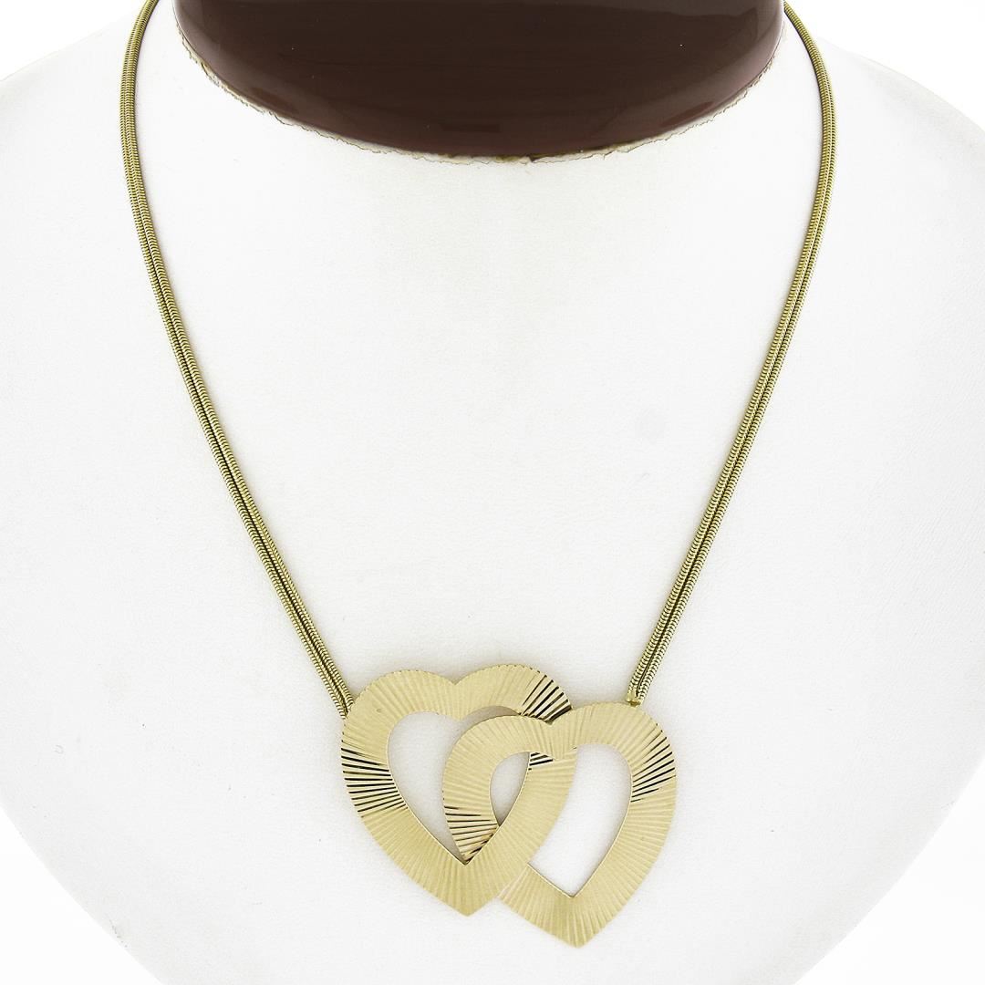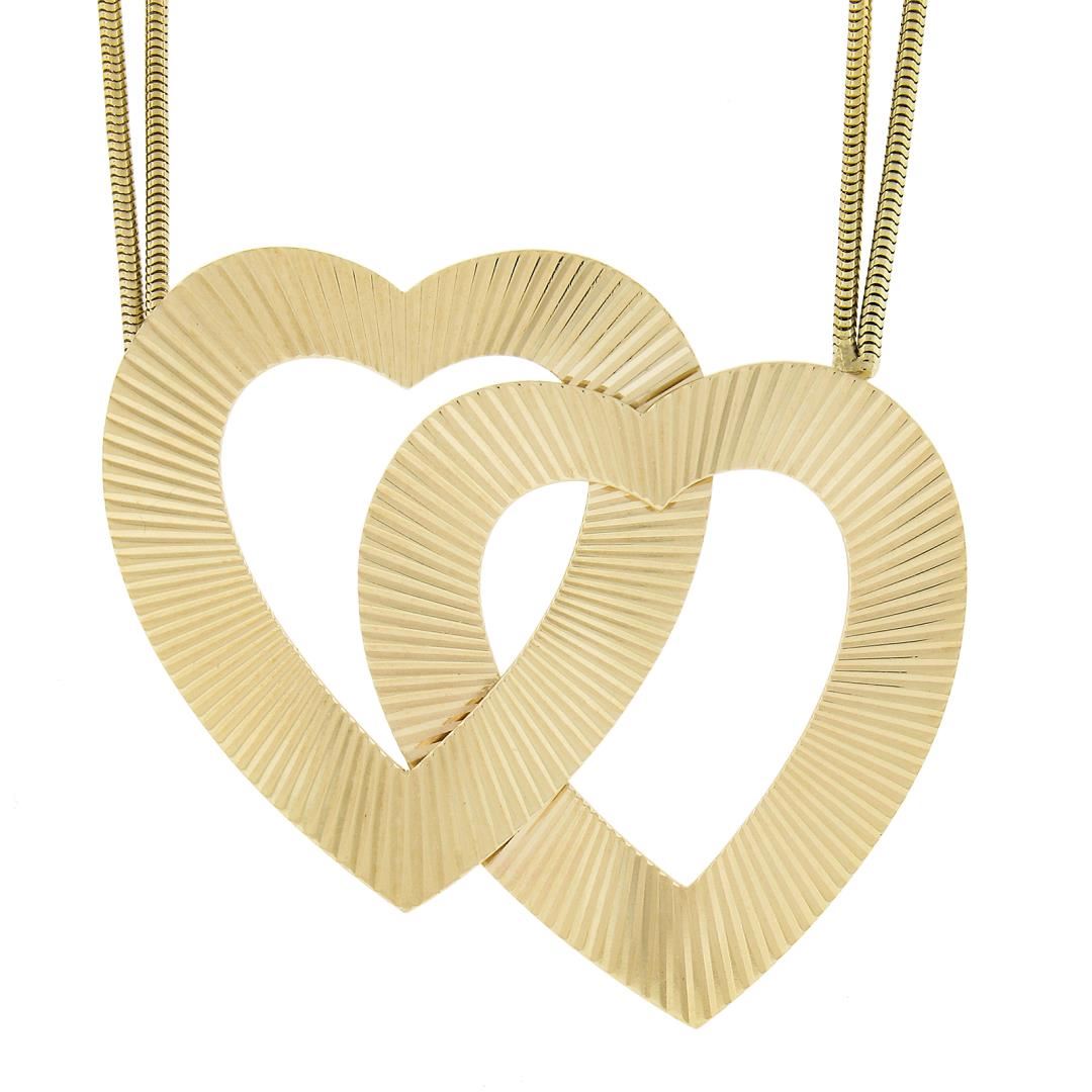 Tiffany & Co. 14K Gold Interlocking Fluted Heart Slide Pendant Dual Snake Chain