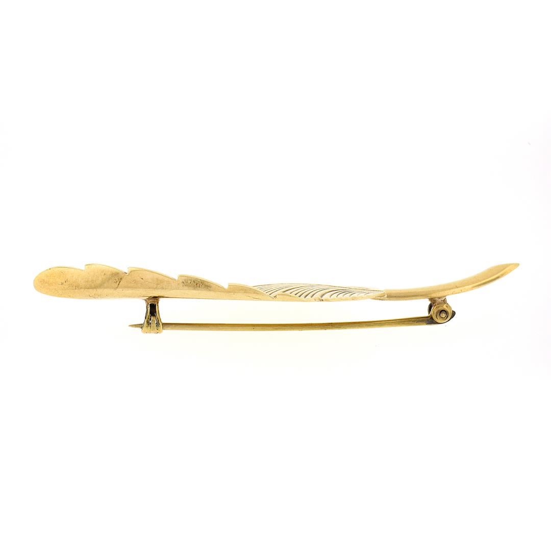 A solid 14k yellow gold brooch by Tiffany & Co. Measures 60.40x15mm and weighs a total of 4.25 grams.