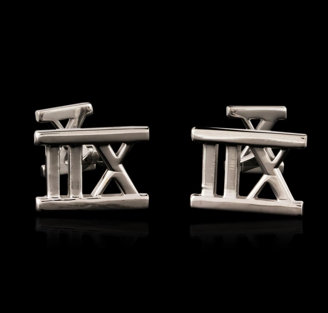 One pair electronically tested 18KT white gold gents cast cuff links. Each cuff link is from Tiffany & Co's Atlas Collection. Area measurements 22.0 x 13.0mm. Bright polish finish. Trademark is T & Co. Identified with markings of "750". Condition is good. Total Weight of Cuff Links 12.67 grams. AIG Appraised at $1,500.00.