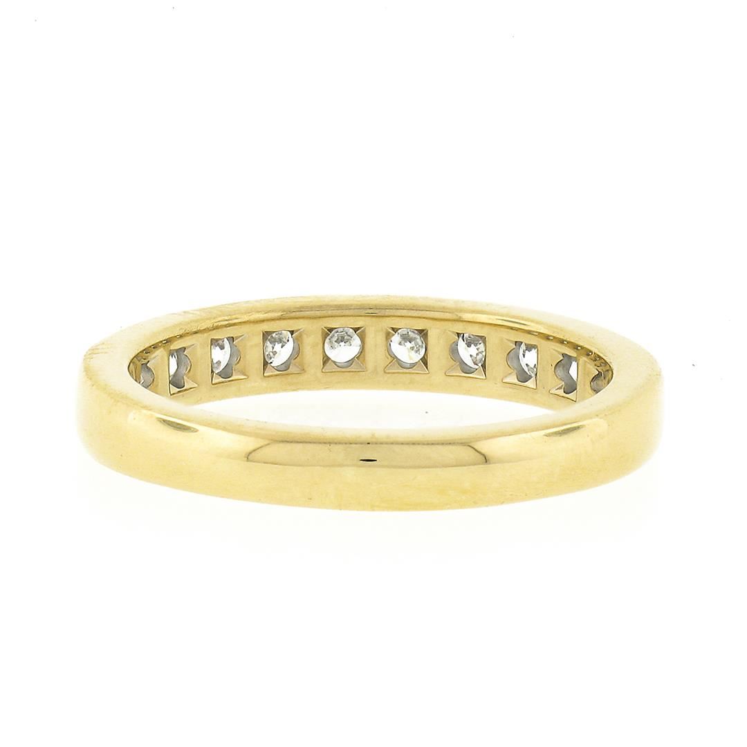 A solid 18k yellow gold band ring by Tiffany & co. with 10 round brilliant cut natural diamonds (E/F - VVS2/VS1 ; 1.0ctw). The ring is size 9.5, weighs a total of 6.16 grams, and measures 3.9mm wide.