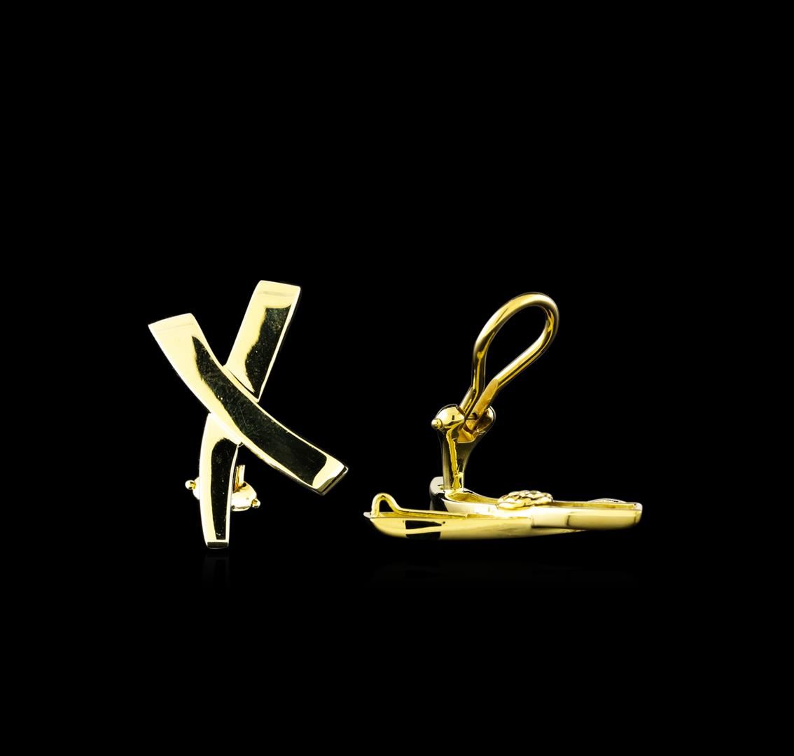 One Pair of Tiffany & Co. Earrings including: 18KT Yellow Gold with a total weight of 12.9 grams and markings of "Tiffany & Co. 750".