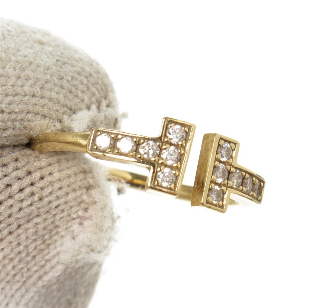 One Tiffany & Co Gold T Wire Diamond Ring 5.5. Item is sold AS-IS. All available information is listed in the description and shown in the photo. Tiffany and Co Gold T Wire Diamond Ring with gold-tone hardware.