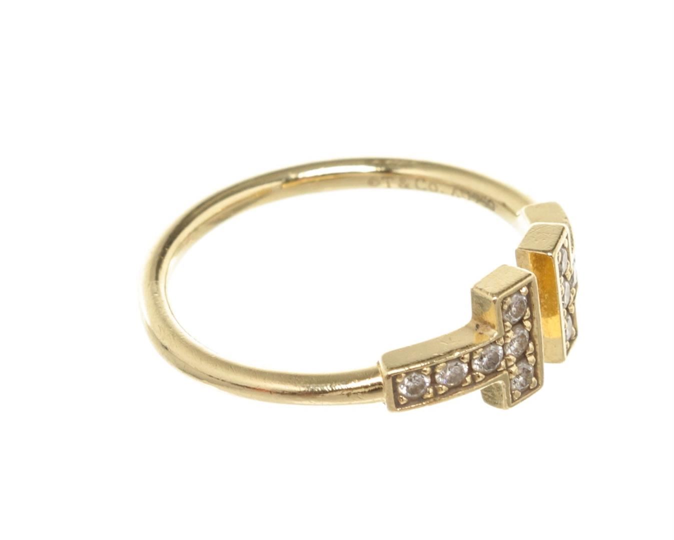 One Tiffany & Co Gold T Wire Diamond Ring 5.5. Item is sold AS-IS. All available information is listed in the description and shown in the photo. Tiffany and Co Gold T Wire Diamond Ring with gold-tone hardware.