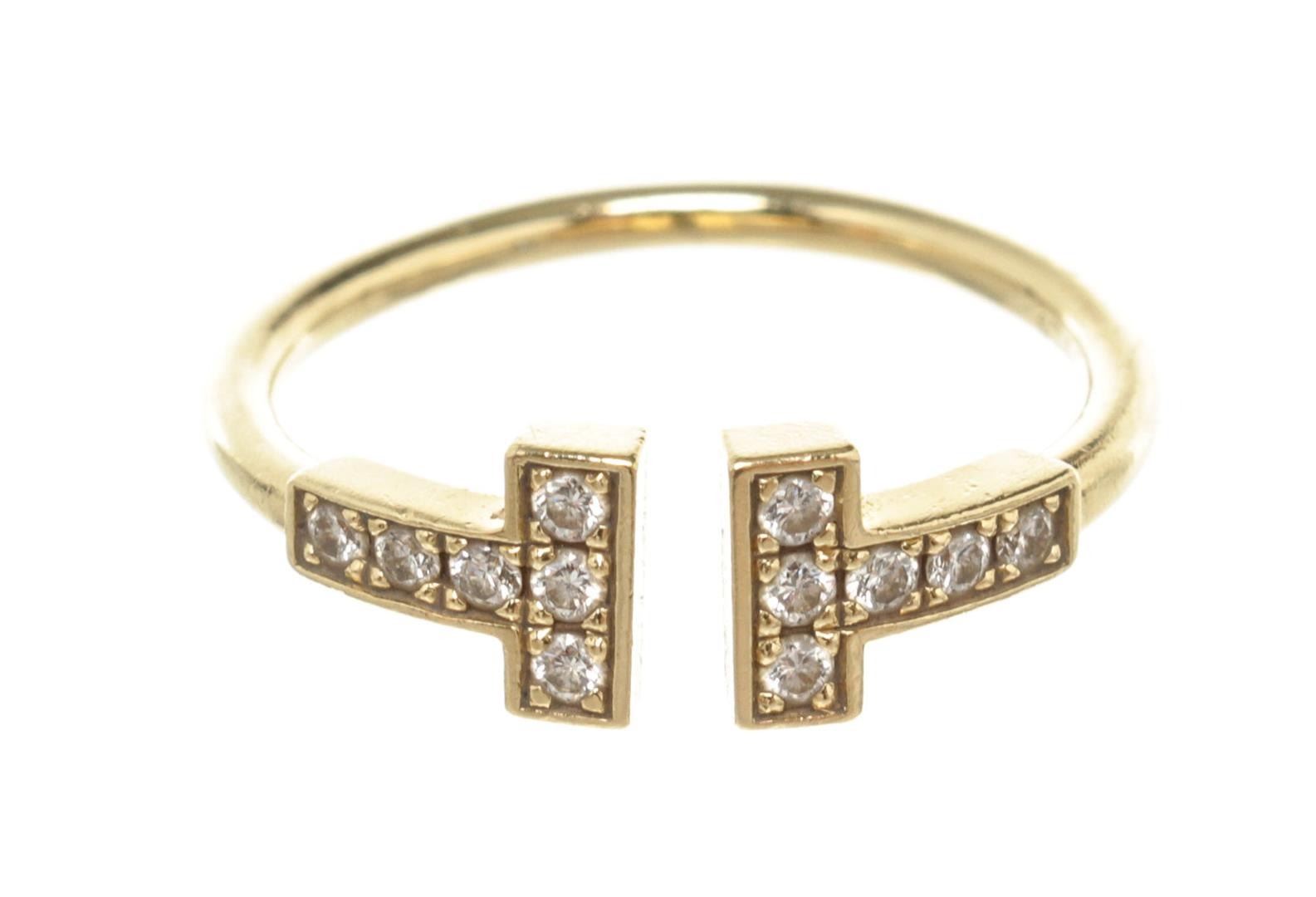Tiffany Co Gold T Wire Diamond Ring with gold-tone hardware.