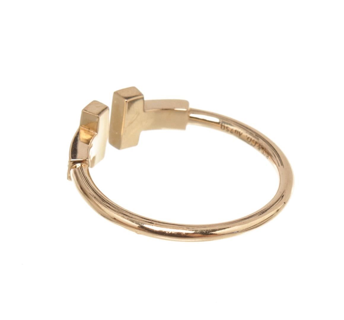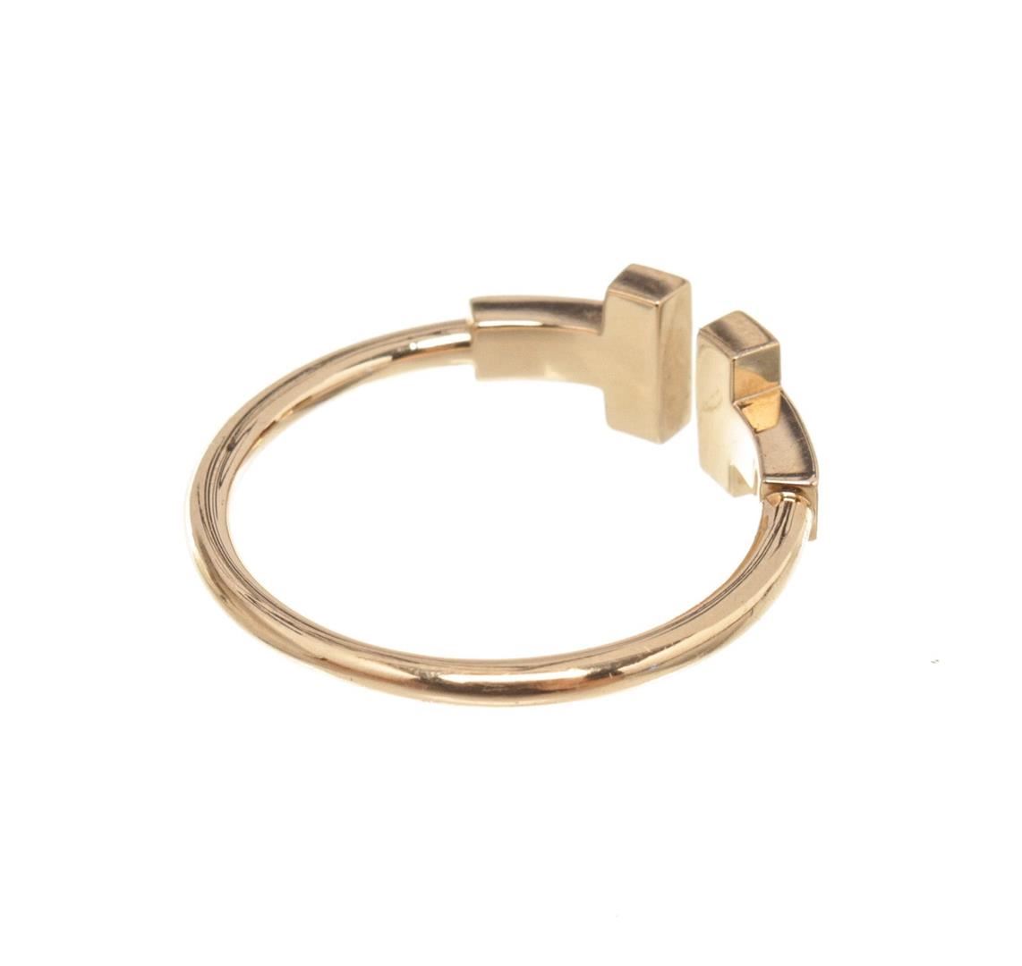 One Tiffany & Co Gold T Wire Diamond Ring. Item is sold AS-IS. Please check photos and descriptions for all available details. Tiffany and Co Gold T Wire Diamond Ring with gold-tone hardware. Size: 5.5