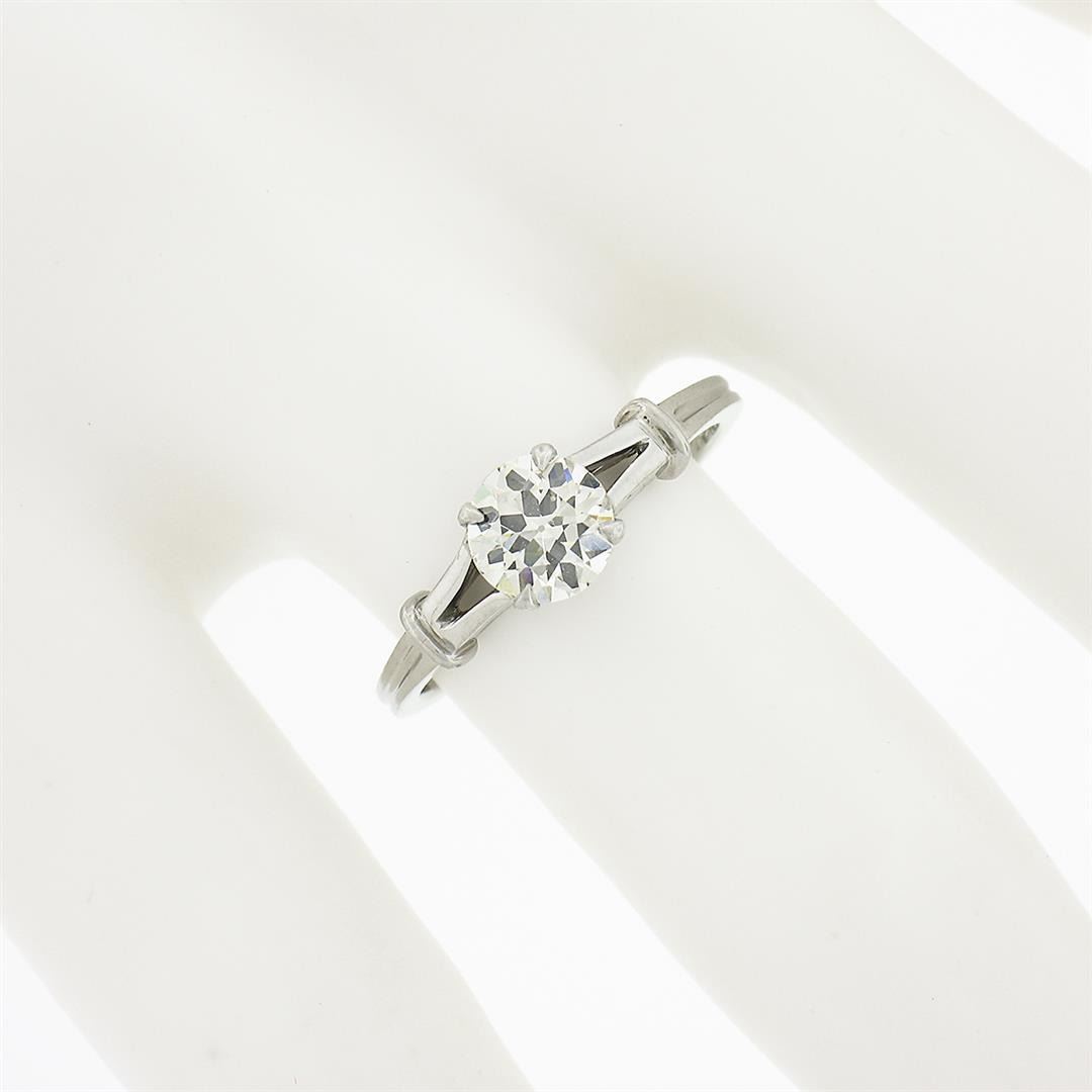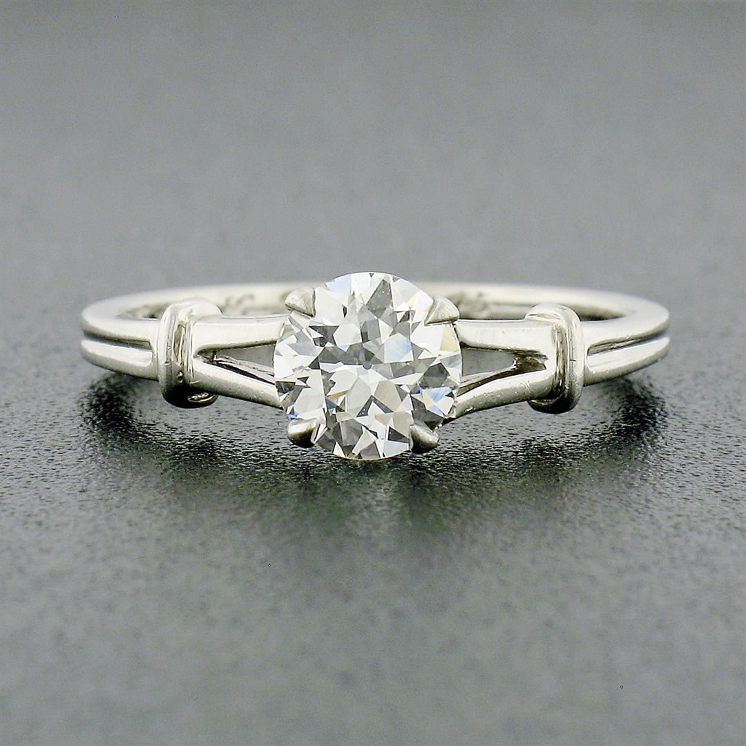 A solid palladium engagement ring by Tifffany & Co. with 1 Gia certified circullar brilliant cut natural diamond (I - VS2 ; 0.67ct ). The ring is size 5.5, weighs a total of 1.90 grams, and measures 5.8mm wide. Comes with all original relevant certificati