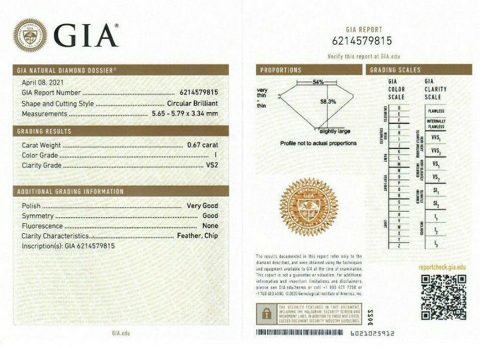 A solid palladium engagement ring by Tifffany & Co. with 1 Gia certified circullar brilliant cut natural diamond (I - VS2 ; 0.67ct ). The ring is size 5.5, weighs a total of 1.90 grams, and measures 5.8mm wide. Comes with all original relevant certificati