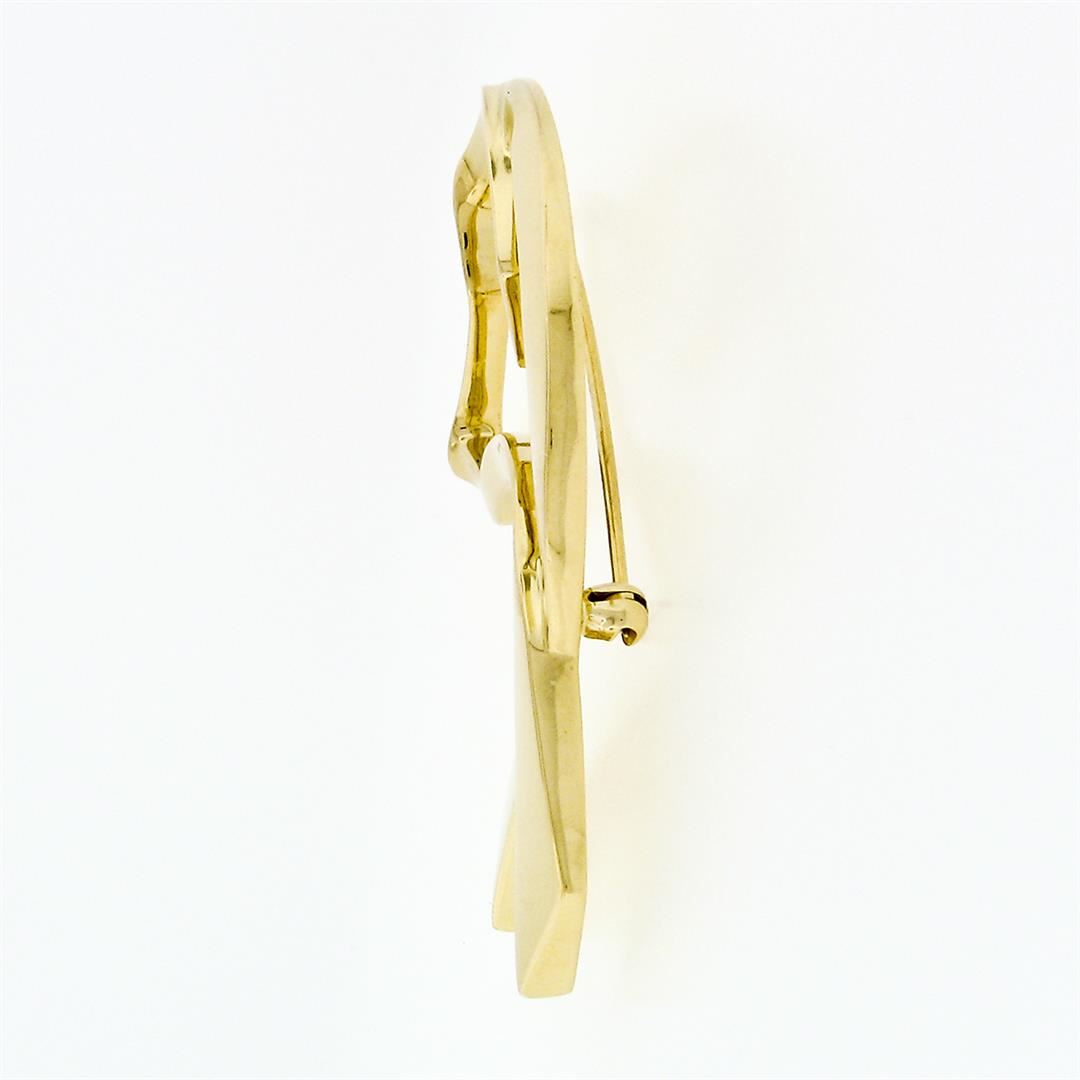 An authentic, vintage, Tiffany & Co. solid 18k yellow gold graffiti open dog ribbon brooch. Measures 48.00x36.15mm and weighs a total of 14.83 grams.