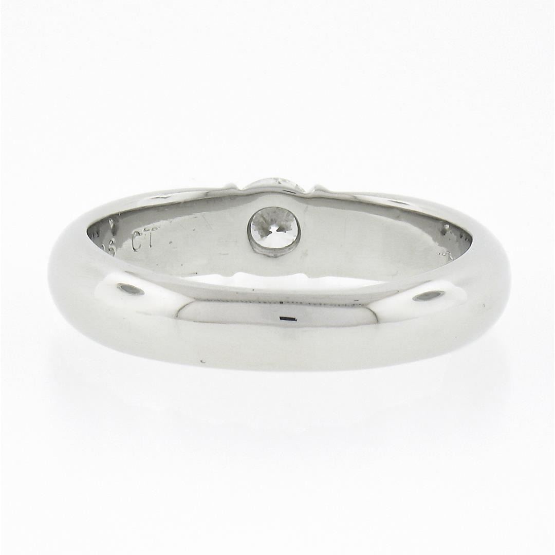 A solid platinum solitaire band ring by Tiffany & co. with 1 round cut natural diamond (F - VVS2 ; 0.26ct). The ring is size 5.5, weighs a total of 6.68 grams, and measures 4.3mm wide.