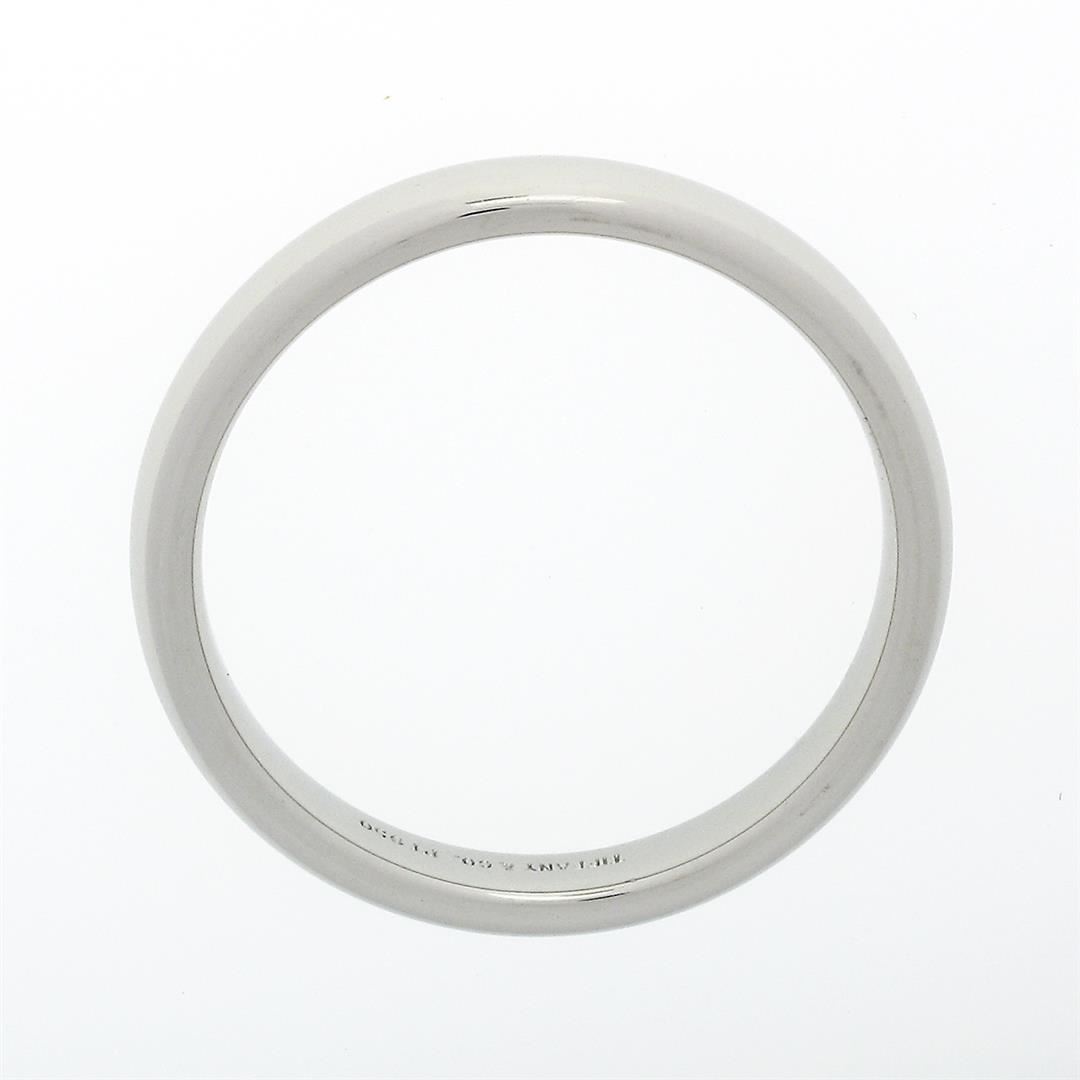 A tiffany & co. solid platinum unisex band ring. The ring is size 10, weighs a total of 8.37 grams, and measures 3.50mm wide.