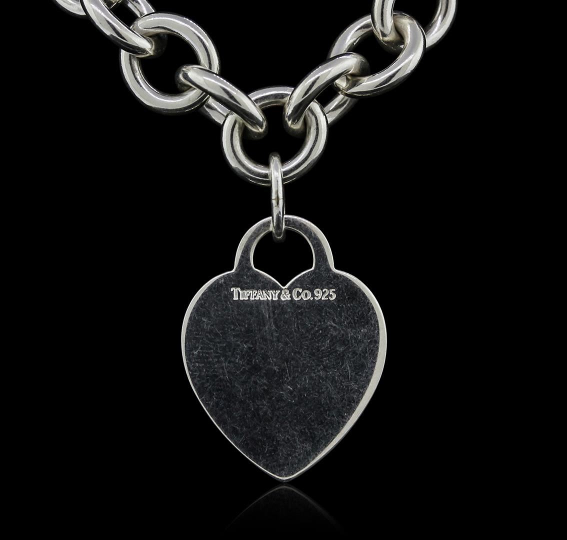 One Tiffany & Co. heart charm necklace featuring: 925 Sterling Silver weighing 74.62 grams.