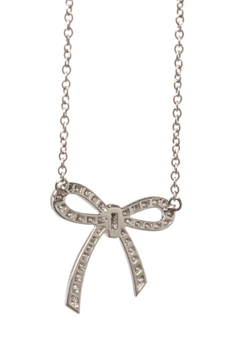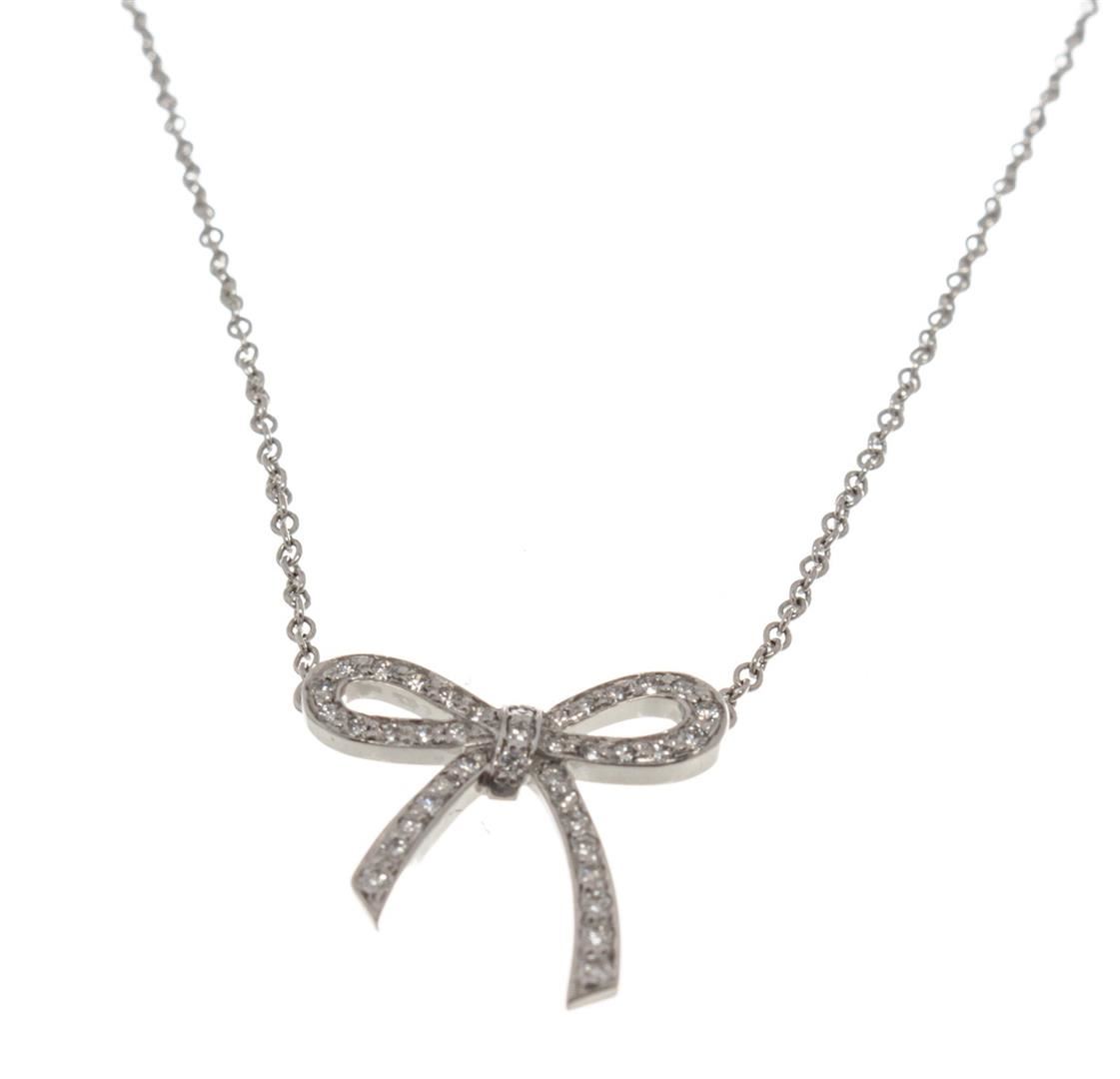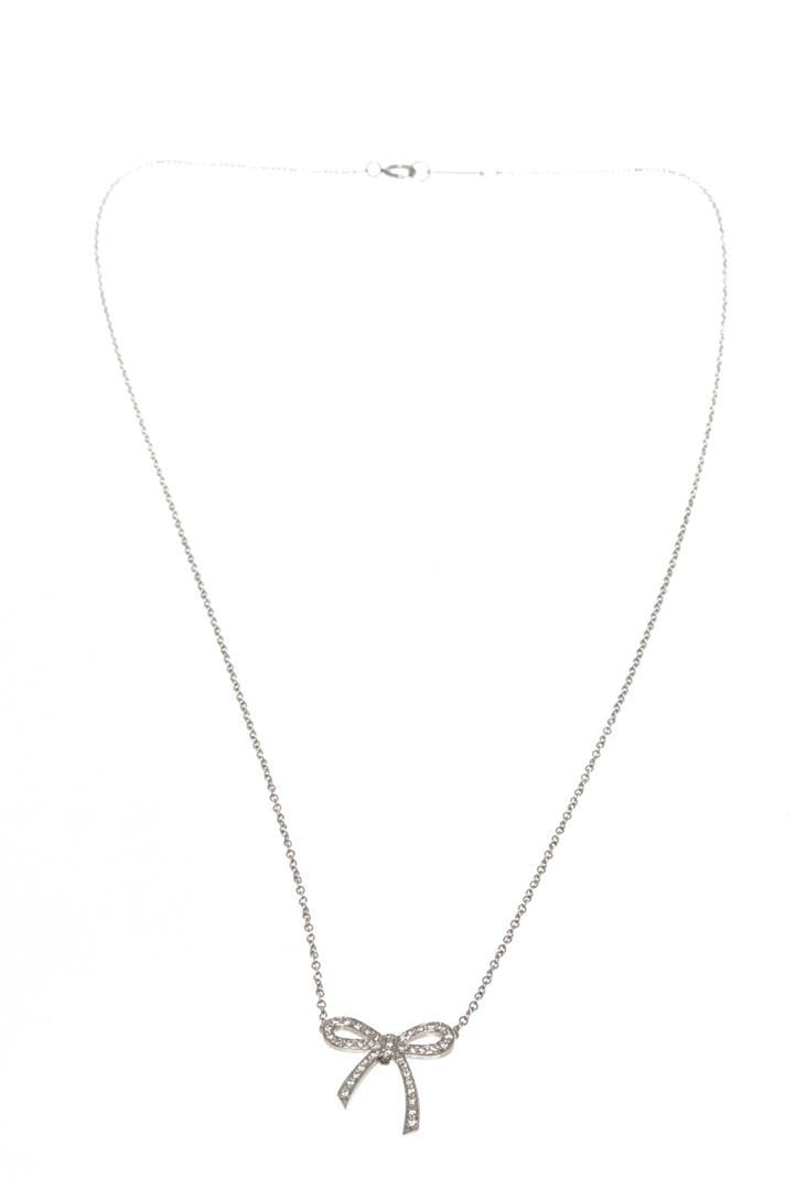 Tiffany Co. Silver Bow Pendant Necklace with silver-tone hardware.