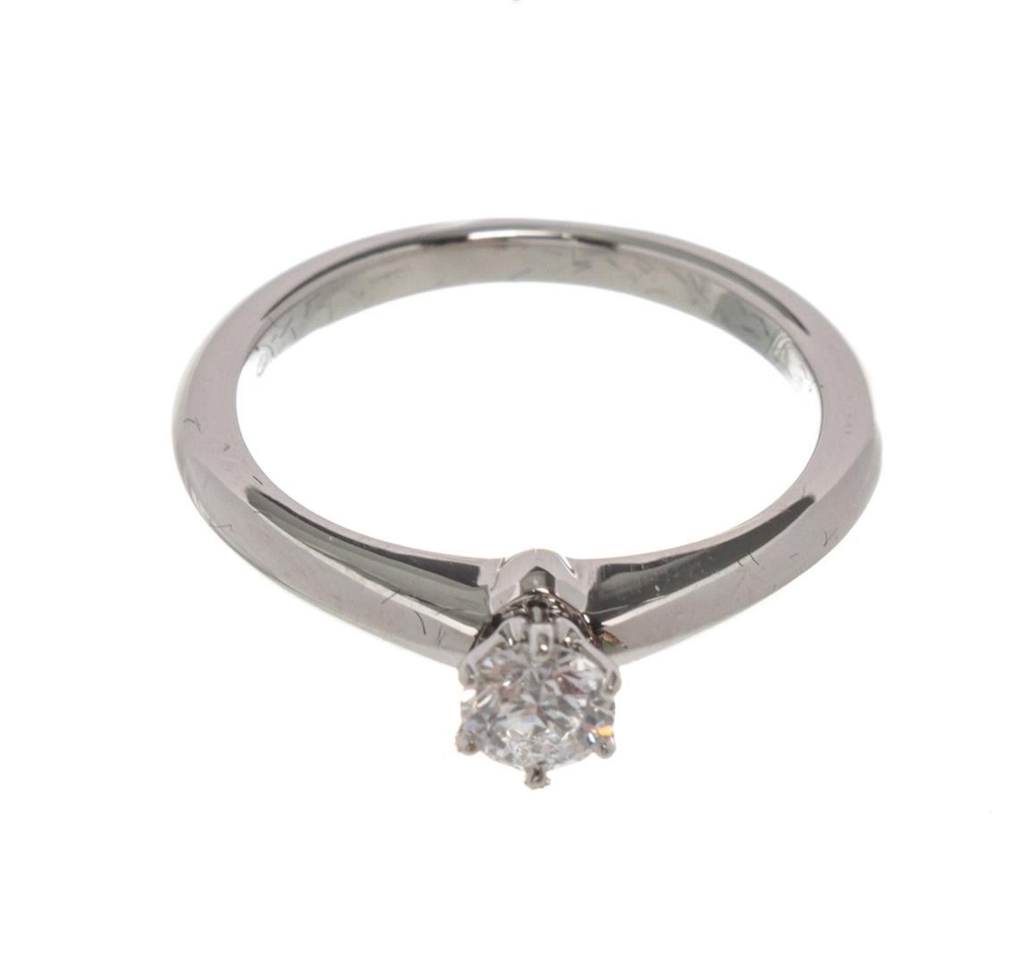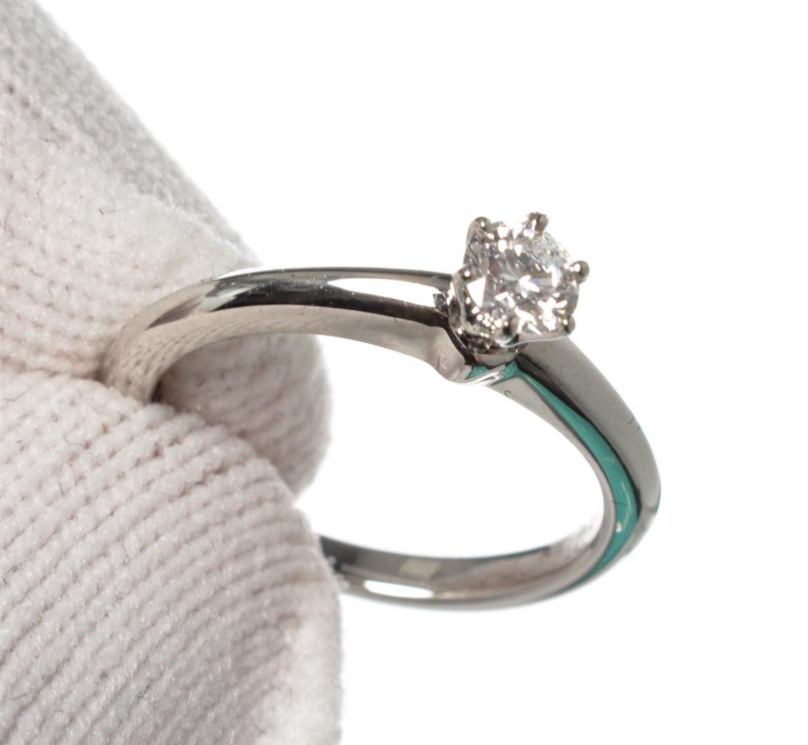 One Tiffany & Co. Silver Diamond Solitaire Ring 4.5. Item is sold AS-IS. All available information is listed in the description and shown in the photo. Tiffany and Co. Silver Diamond Solitaire Ring with platinum, silver-tone hardware. Size 4.5