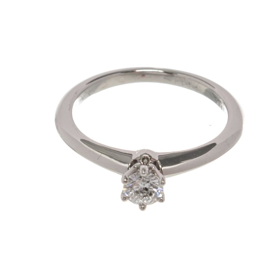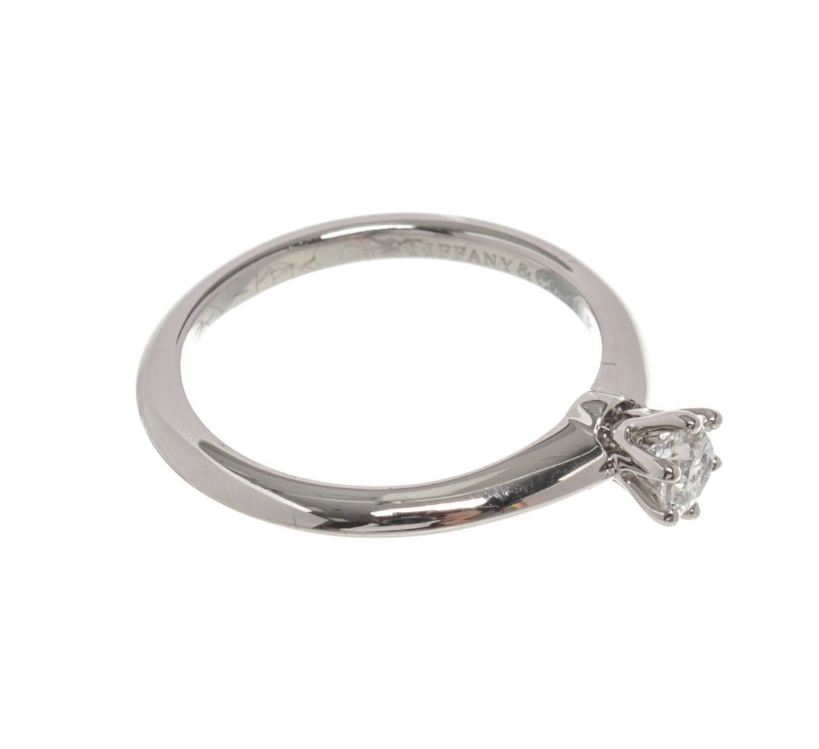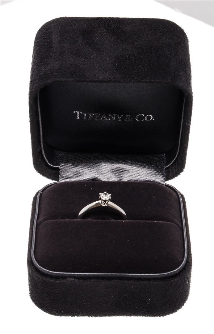 Tiffany & Co. Silver Diamond Solitaire Ring with platinum, silver-tone hardware.