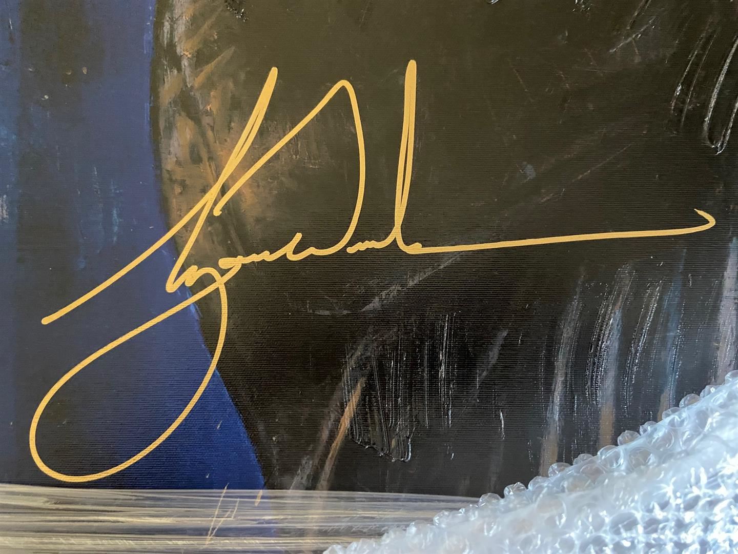 A rare limited Edition giclee on stretched canvas by renowned Sports Artist Stephen Holland, signed by Tiger Woods and by Holland . . With COA hologram. 41.5x28" Ready to hang or be framed.