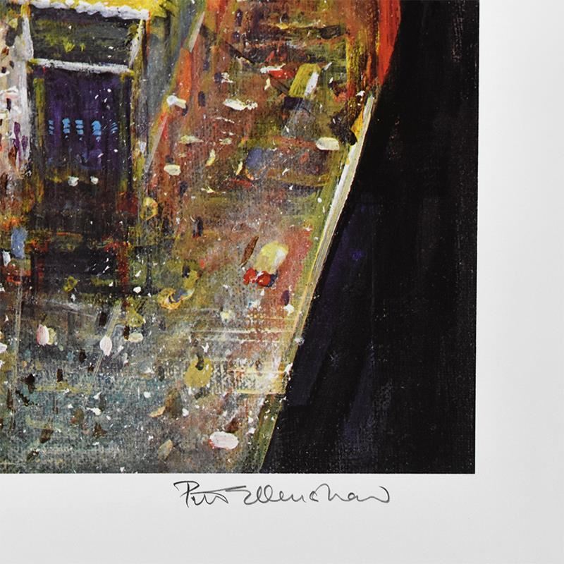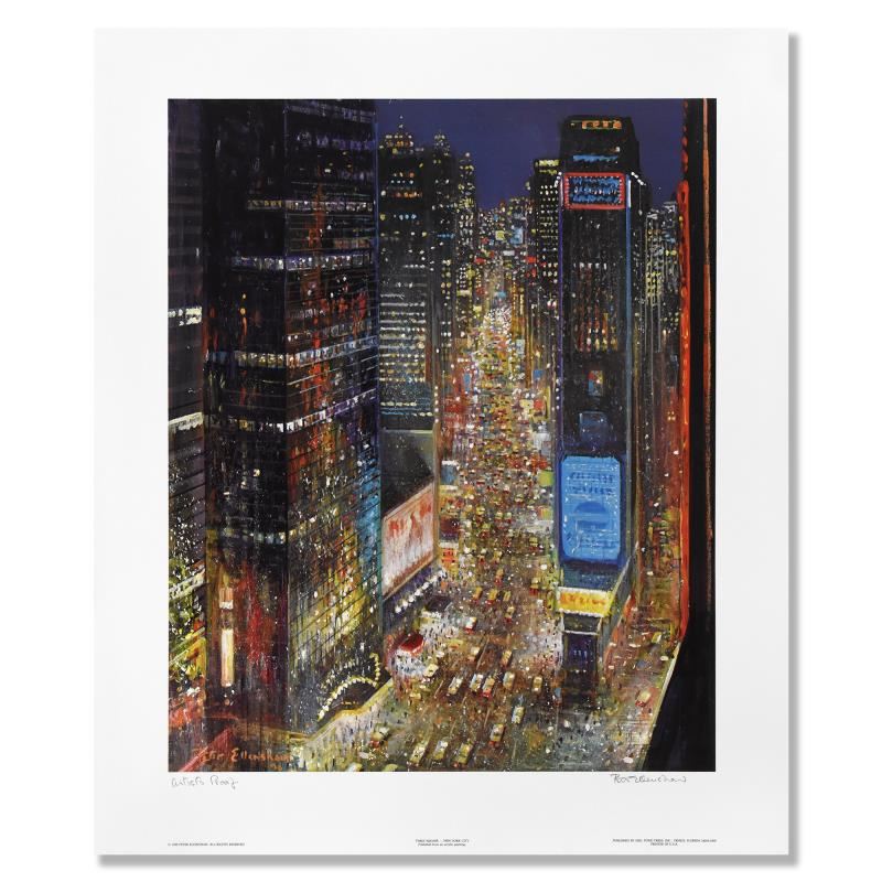 Times Square New York City by Peter Ellenshaw (1913-2007). "Times Square New York City" is a limited edition lithograph on paper by Peter Ellenshaw (1913-2007), numbered and hand signed by the artist. Includes Letter of Authenticity. Measures approx. 19"