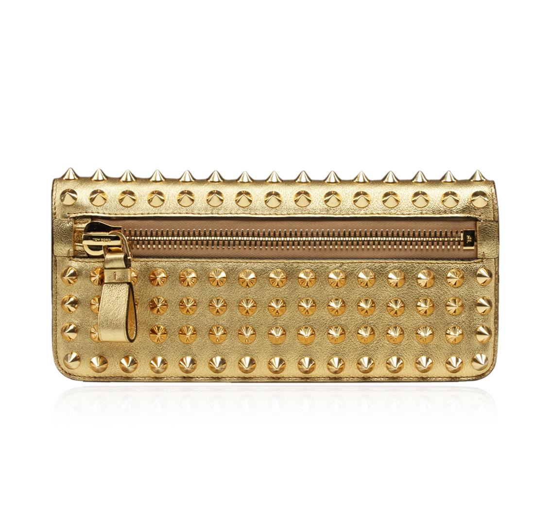 One Tom Ford Metallic Studded Gold Zip Clutch. This clutch features the signature golden hardware, full-flap front with magnetic-snap closure, front zip pocket at flap, and interior zip pocket. Estimated retail value $2,940.00.