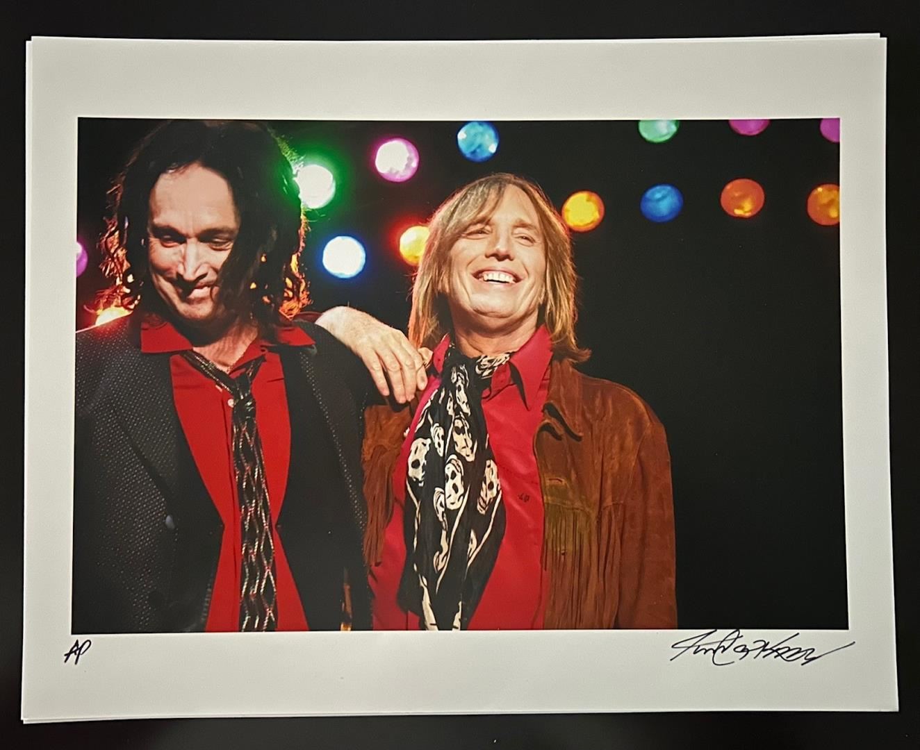 Tom Petty & Mike Campbell enjoy a laugh on stage in this 11x14" color photograph by Rock Star photographer Robert Knight