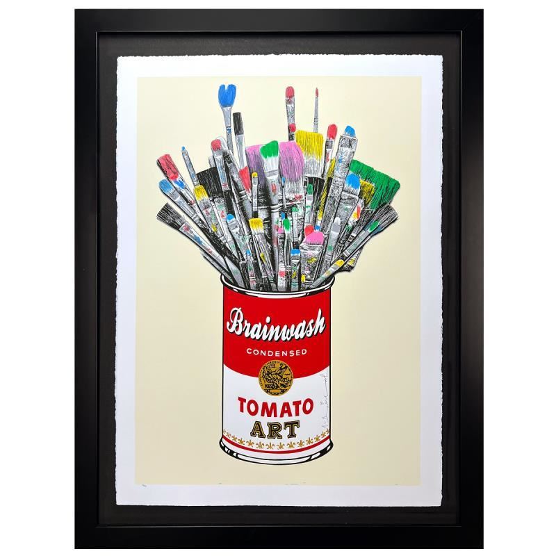 "Tomato Pop (Off-White)" is a limited edition uniquely hand-finished silk screen print on paper by Mr Brainwash. The piece is hand signed and thumb-printed by the artist. The piece comes custom framed and with a Certificate of Authenticity. Measures approximately 42" x 34" (framed) 30" x 22" (image).
