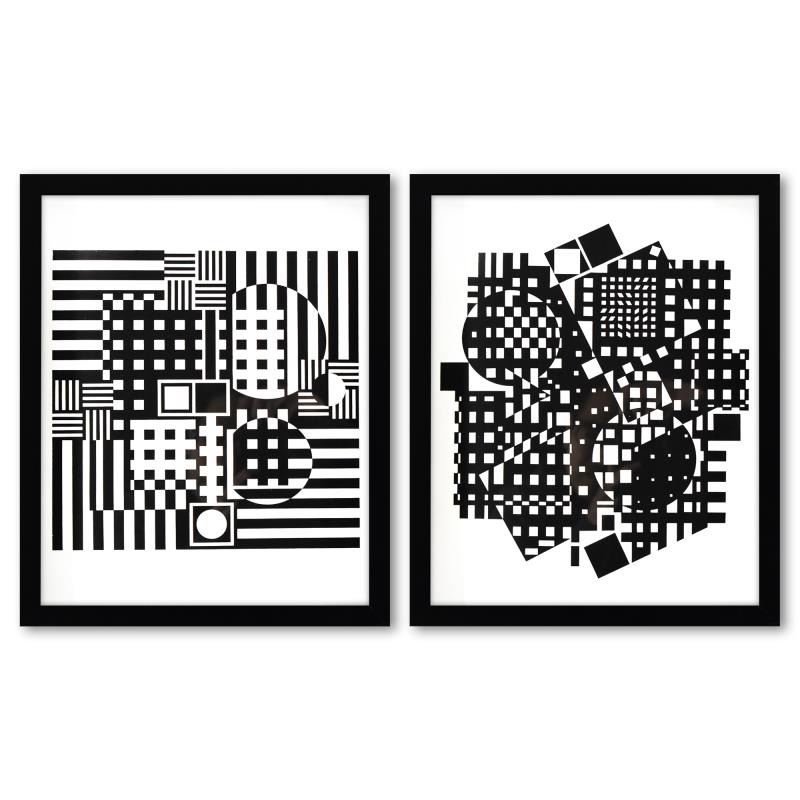 "Torke-UY et Jerusa de la serie Croises (Diptych)" is a set of heliogravure prints on paper, published in 1973, by Victor Vasarely (1908-1997). These pieces come custom framed, with a letter of authenticity and with a 1976 Vasarely paperback. Measures approx. 12.5" x 15" (frame), 10" x 13" (image).