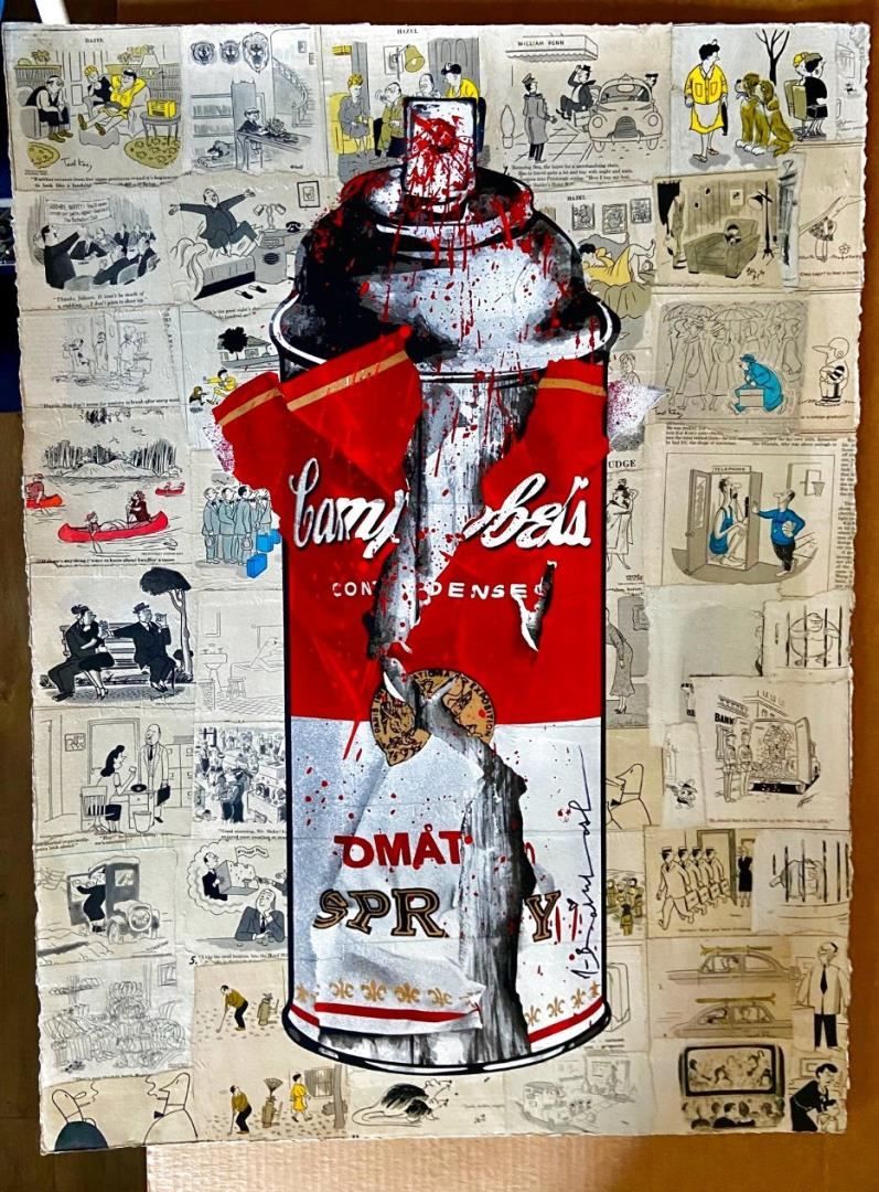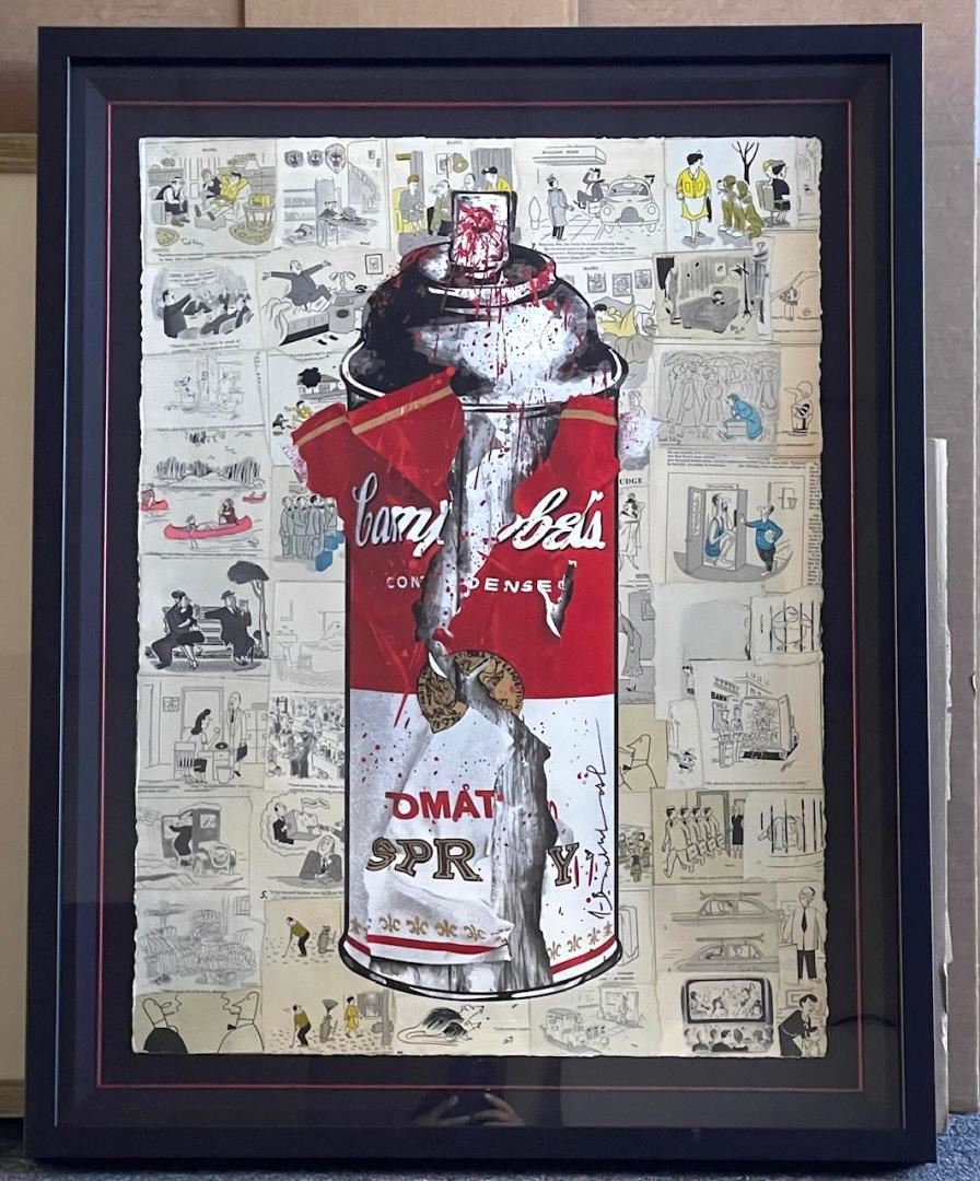 A Unique hand-signed mixed media overpaint on silkscreen of one of Mr. Brainwash's iconic images. Signed 1/1 in verso. 30x22" on paper with COA.