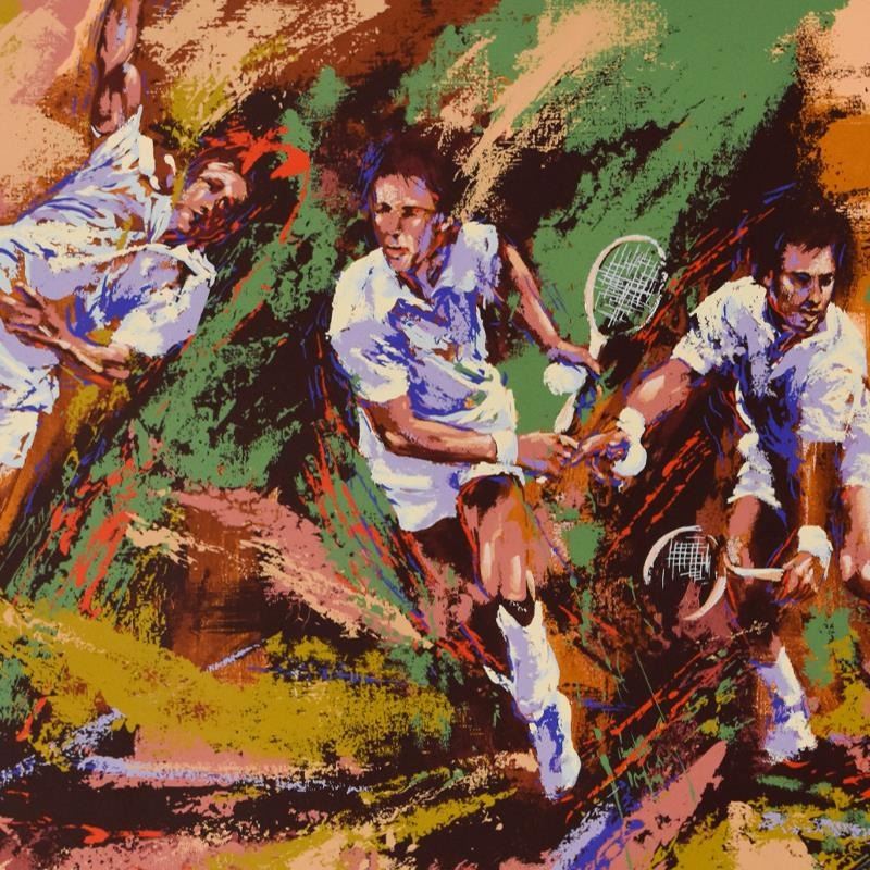 "Total Tennis" is a limited edition serigraph on paper by Mark King (1931-2014), numbered and hand signed by the artist. Includes Letter of Authenticity. Measures approx. 41" x 32" (border), 35" x 25.5" (image). Please note: due to the age of this piece there is minor wear in the white border area.
