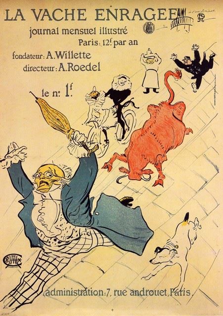 Artist: Toulouse-Lautrec - Title: La Vache Enragee - Medium: Fine Art Giclee on Canvas - Image Size: Approximately 32 inches x 22.5 inches - Unframed on Unstretched Canvas - Biography: Today we know Henri de Toulouse-Lautrec as the archetypal bohemian artist of the belle epoque, the "beautiful era" in Paris in the last decade of the 19th Century. He helped usher in the new century, and died when the job was done. - Lautrec captured the spirit and emotion of the era in his posters and portraits. Although his handicap and his alcohol abuse kept him from enjoying some of life's pleasures, Lautrec clearly shared in the joie de vivre of the time.