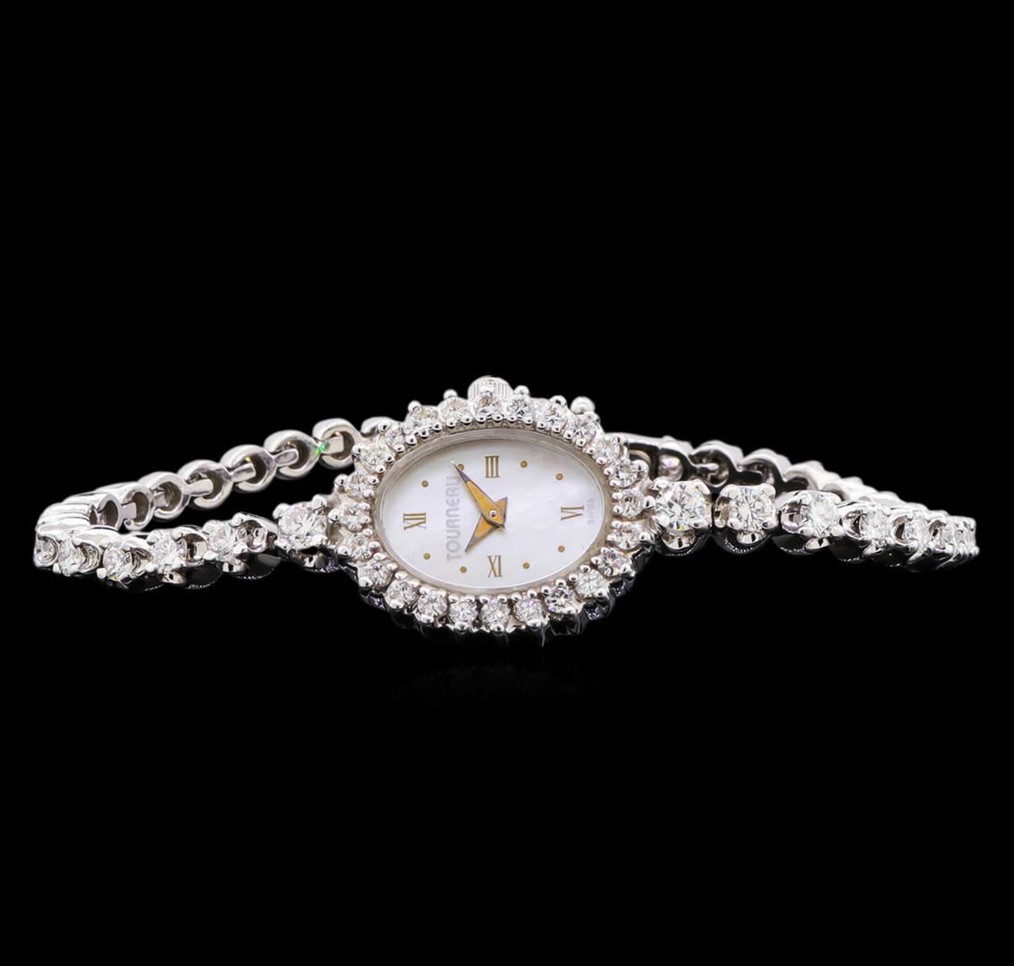One Tourneau ladies watch featuring: Case: 14KT white gold set with diamonds. Dial: Mother of pearl color. Bracelet: 14KT white gold set with diamonds.