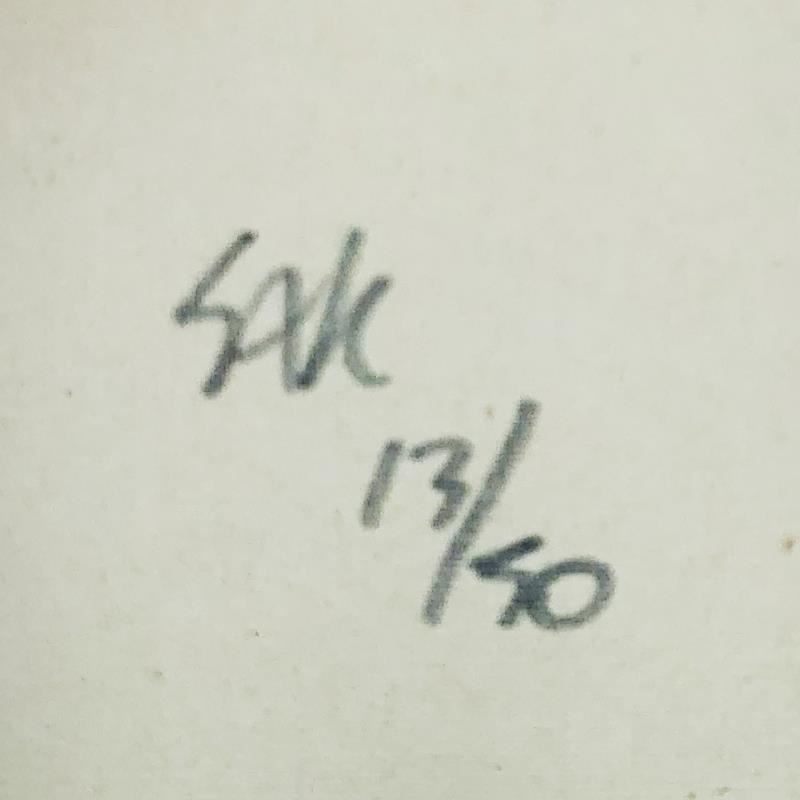 London Bridge is limited edition hand pulled silkscreen unique mixed media on canvas by Andy Warhol protege Steve Kaufman (1960-2010). This piece is numbered and hand signed inverso and includes a letter of authenticity. As is common with Kaufman's works, this piece may have perceived minor flaws, but is in overall good condition. Measures approximately 13 x 17 before cropping.