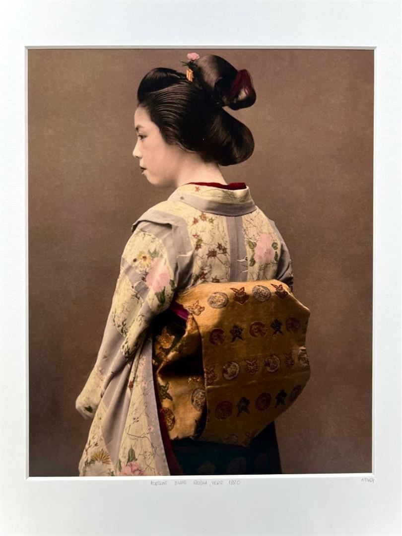 Traditional Asian Portrait Dune Geisha Vers 1880 YellowKorner Certified Photograph. Certificate of Authenticity from YellowKorner affixed to the back. Matted Dimensions 16"x20". Protected with Clear Mylar Sleeve.