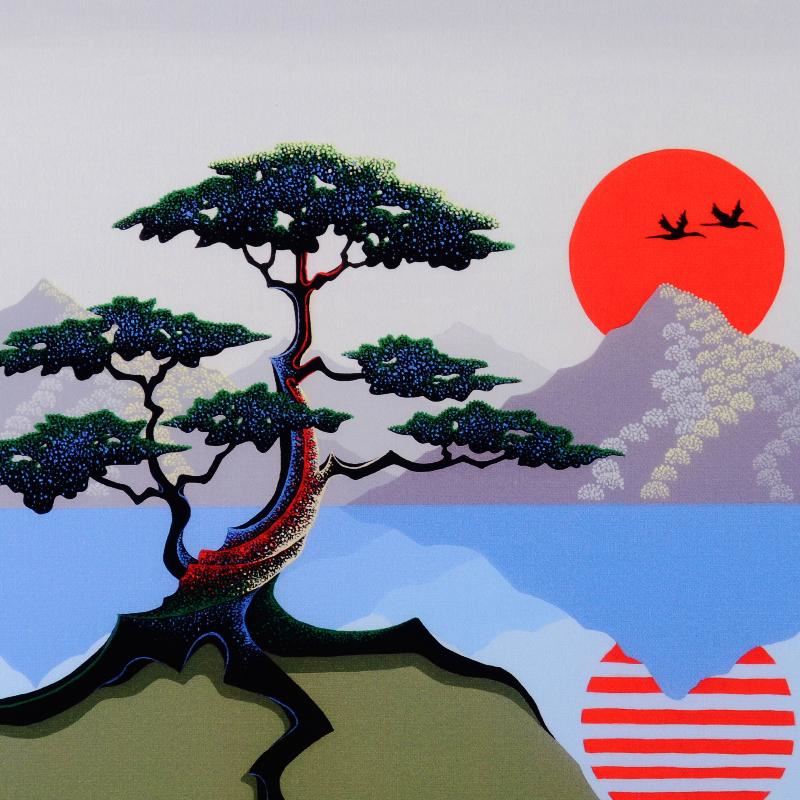 Larissa Holt, a student of distinguished artist Eyvind Earle(1916-2000), uses bold colors and breathtaking scenery to create images of Nature in her own unique style. "Tranquility Sea" is a limited edition giclee on stretched canvas by Holt, numbered and bearing Holt's authorized signature. This piece comes gallery wrapped. Includes Certificate of Authenticity! Measures approx. 12.5" x 10" x 1.5" (image).