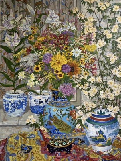"Treasures and Tiger Lilies" is a limited edition signed and numbered serigraph on paper by John Powell - This piece is 33" x 25".