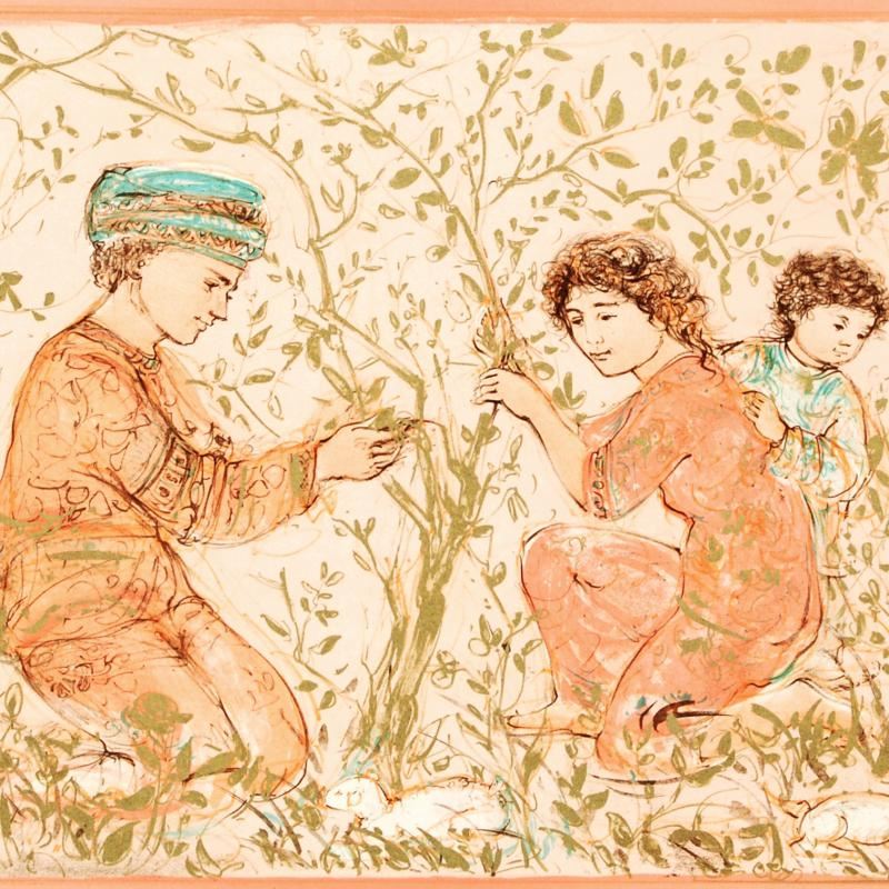 "Tree of Life" is a limited edition lithograph on paper, numbered and hand signed by Edna Hibel (1917-2014). Includes Certificate of Authenticity! Measures approx. 22.5" x 18" (with border), 17.5" x 11.5" (image).