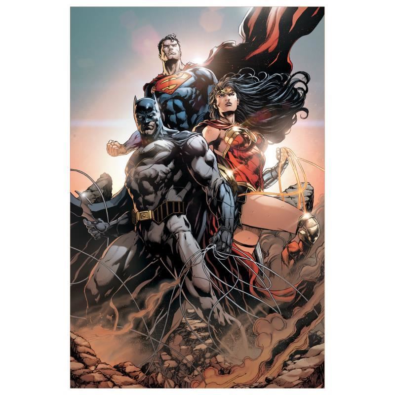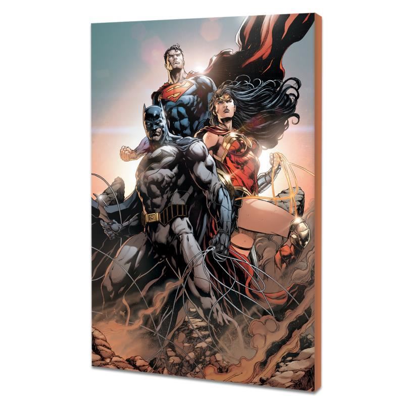 "Trinity #1" is a limited edition giclee on canvas featuring variant cover art by Jason Fabok from the 2016 comic. This piece comes gallery wrapped and includes a certificate of authenticity. Measures approximately 24" x 16" (image). This item requires special handling and may have a longer than usual turnaround.
