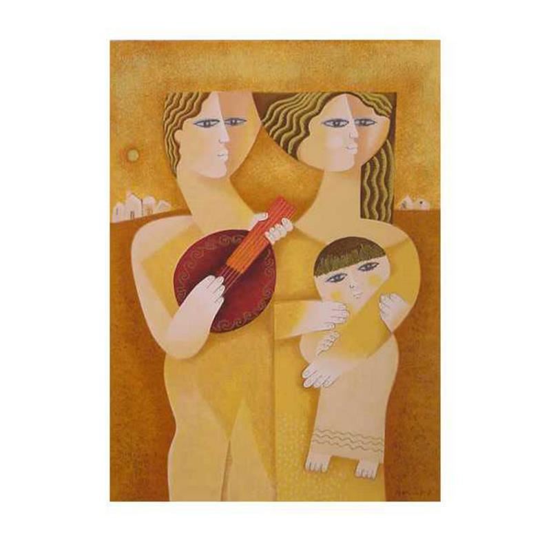 "Trio a la Guitare", is a limited edition Serigraph on Paper by Samy Briss. Numbered and hand signed, this piece is accompanied by a letter of authenticity. Measures approximately 17" x 12" (image).