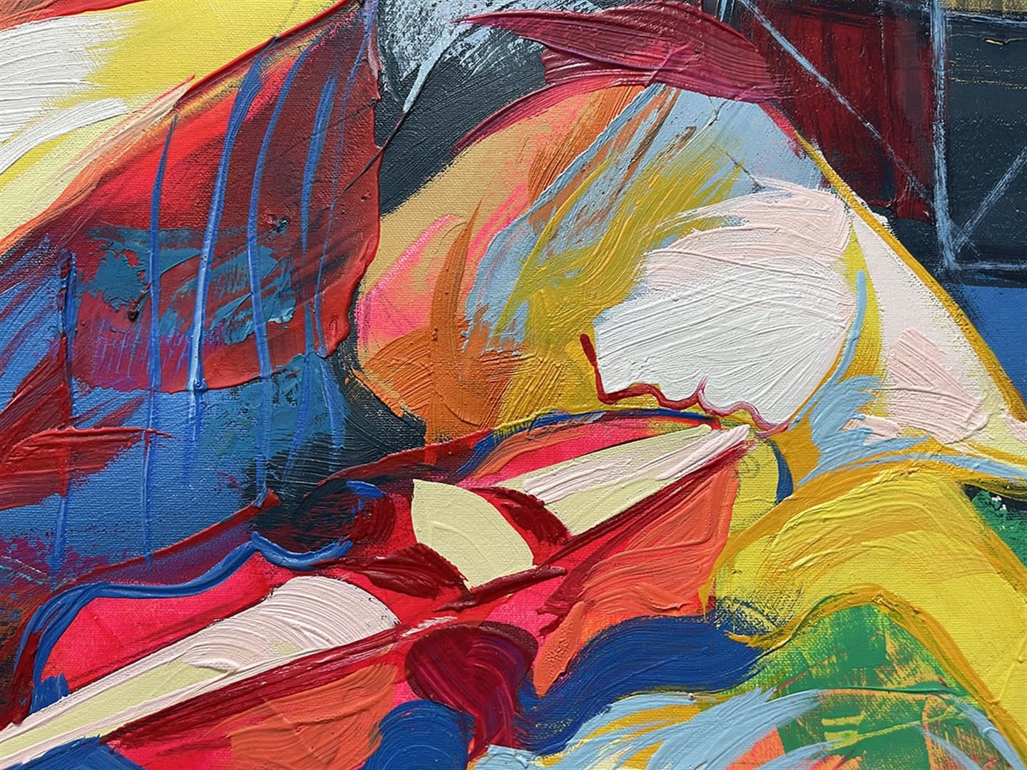 Fascinating original oil on canvas. Hand signed by artists. Artwork comes with a certificate of authenticity. This artwork comes rolled. Size 30x63"