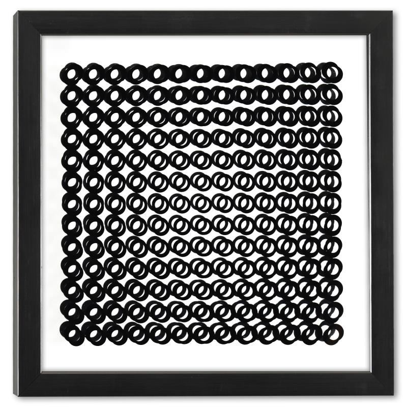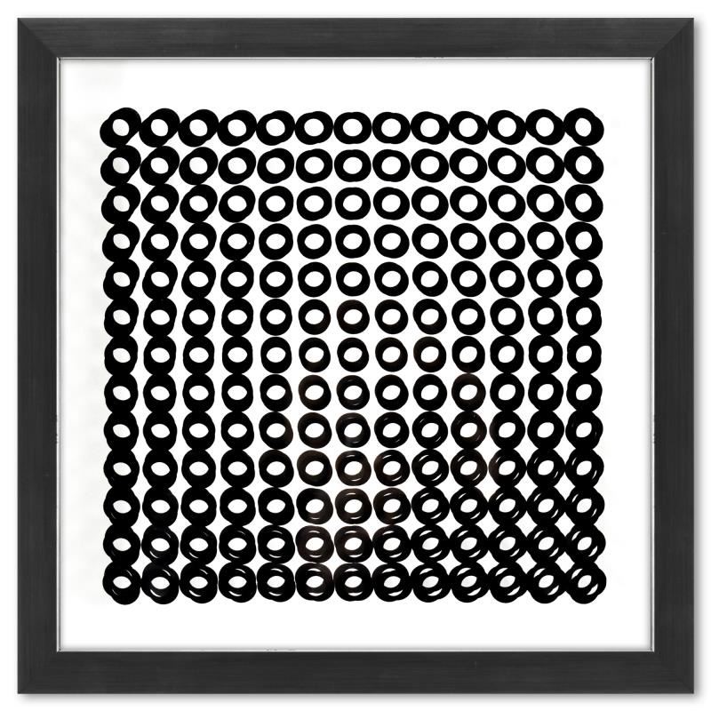 "Trois Dimensions Optique de la série Cinetiques" is a dimensional artwork, published in 1973, by Victor Vasarely (1908-1997). This piece comes custom framed, with a letter of authenticity and with a 1976 Vasarely paperback. Measures approx. 11.5" x 11.5" (frame), 9" x 9" (image).