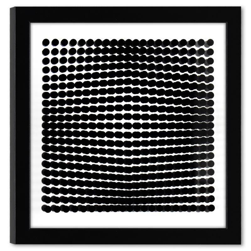 "Trois Dimensions Optique de la série Cinetiques" is a dimensional artwork, published in 1973, by Victor Vasarely (1908-1997). This piece comes custom framed. This piece comes with a catalogue raisonne of Vasarely's work with forward from Marcel Joray (paper back, published 1976). Includes Letter of Authenticity. Measures approx. 11.5" x 11.5" (frame), 9" x 9" (image).