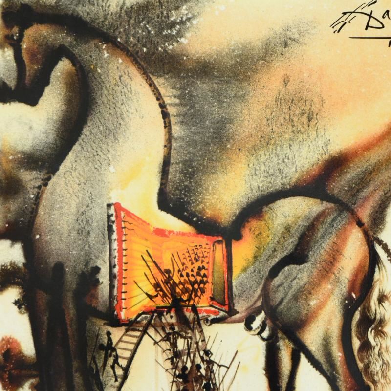 "Trojan Horse" is a limited edition glazed ceramic tile from a SOLD OUT edition by Salvador Dali (1904-1989), numbered and plate signed! Measures approx. 8" x 10" (tile).