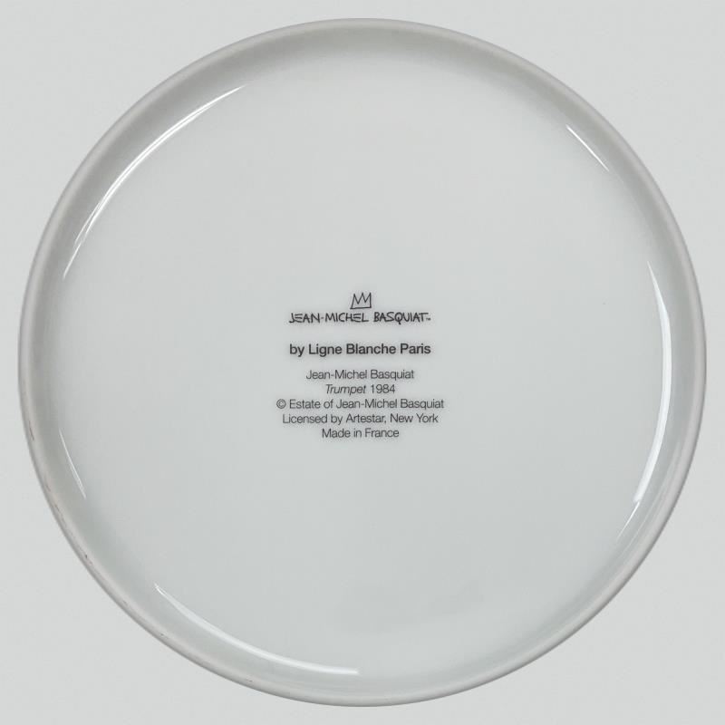"Trumpet 1984" is a Limoges porcelain plate bearing the plate signature inverso of Jean-Michel Basquiat (1960-1988). This plate is custom framed and floated on linen. Measures approx. 16" x 16" (frame), 11" (plate diameter).