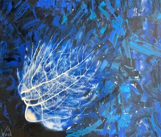 Large abstract acrylic painting on stretched canvas by Marion Wood . 60x48" . COA.