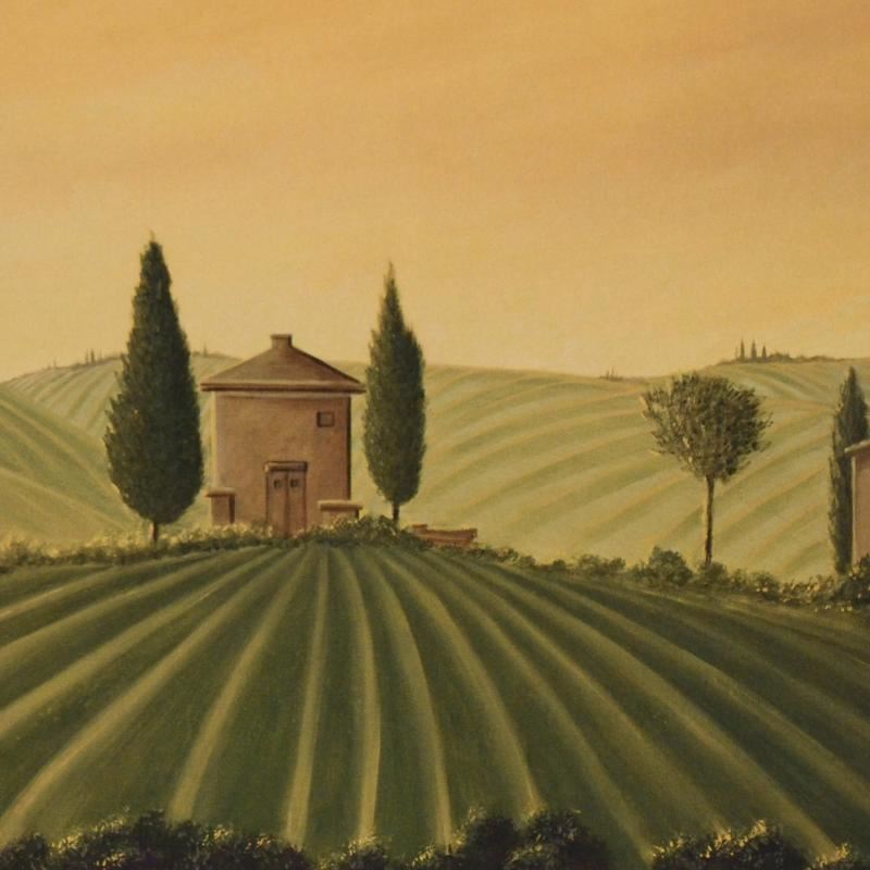 "Tuscan Dream" is a limited edition lithograph on paper by Steven Lavaggi, hand signed and numbered by the artist! Measures approx. 20" x 10" (with border); 16" x 8" (image).
