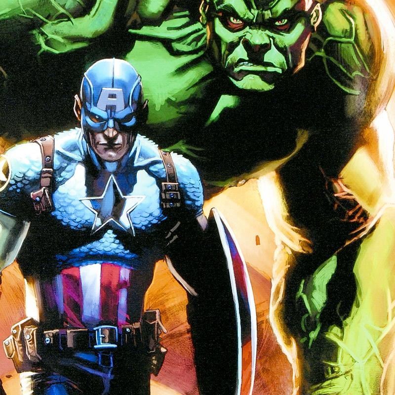 A piece of comic book history, this limited edition print, drawn by Gabriele Dell'Otto, depicts two classic characters from the Marvel Universe. Italian-born illustrator Gabriele Dell'Otto began his career with Marvel by working for the European division and created well-known covers and posters. "Ultimate Origins #5" is a numbered limited edition giclee on canvas by Gabriele Dell'Otto presented by Marvel Comics and hand signed by the great Stan Lee. Includes Certificate of Authenticity! Measure approx. 15" x 22" (image).