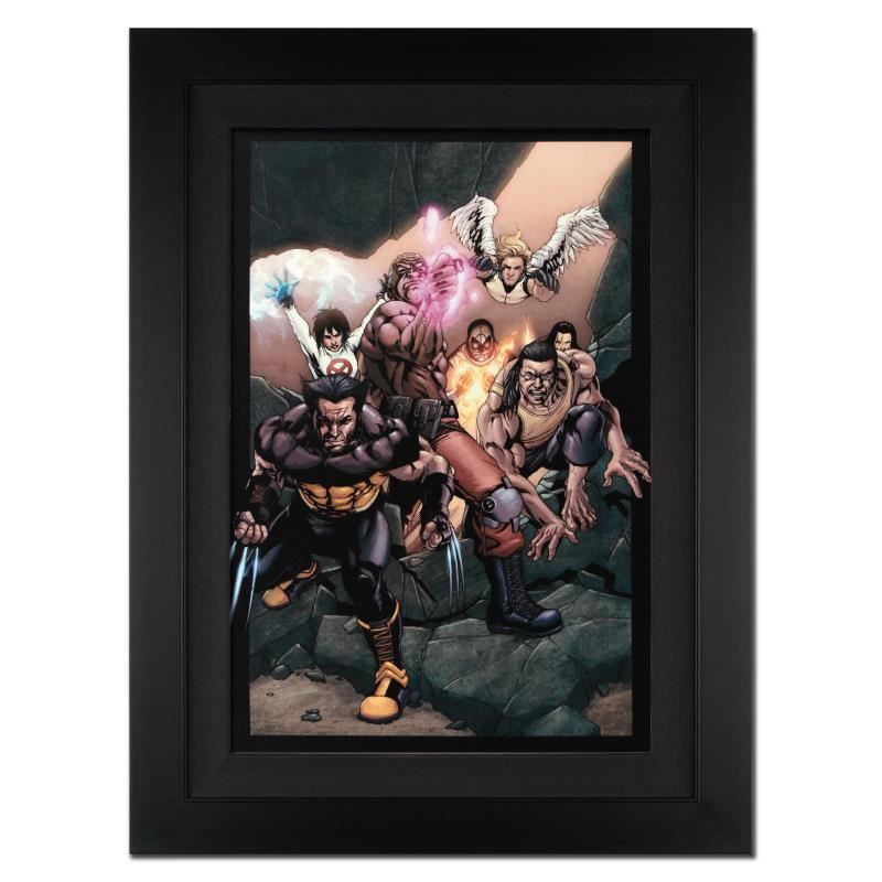 A piece of comic book history, this limited edition, from original art by Salvador Larroca, depicts Wolverine, Beast, Bishop and Angel. Salvador Larroca is a Spanish comic book artist, primarily known for his work on various X-Men titles. After several years of working as a cartographer, he began working as a comic artist at Marvel UK, the Britain-based imprint of Marvel Comics. Larroca began to work on mainstream North American comics, such as Marvel Comics' Ghost Rider, during the mid 1990s. "Ultimate X-Men #89" is an extremely limited edition giclee on canvas by Salvador Larroca presented by Marvel Comics, hand signed by the great Stan Lee and numbered out of only 10! This piece is custom framed and ready to hang. Includes Certificate of Authenticity! Measures approx. 25" x 34" (with frame), 18" x 27" (image).