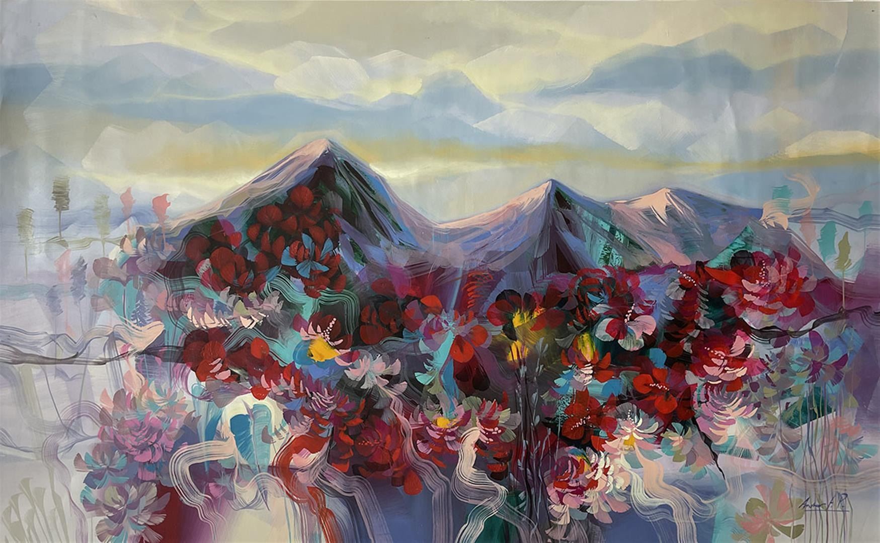 Stunning original acrylic on canvas. Hand signed by artist. This artwork comes rolled. Approximately 84x48 inches